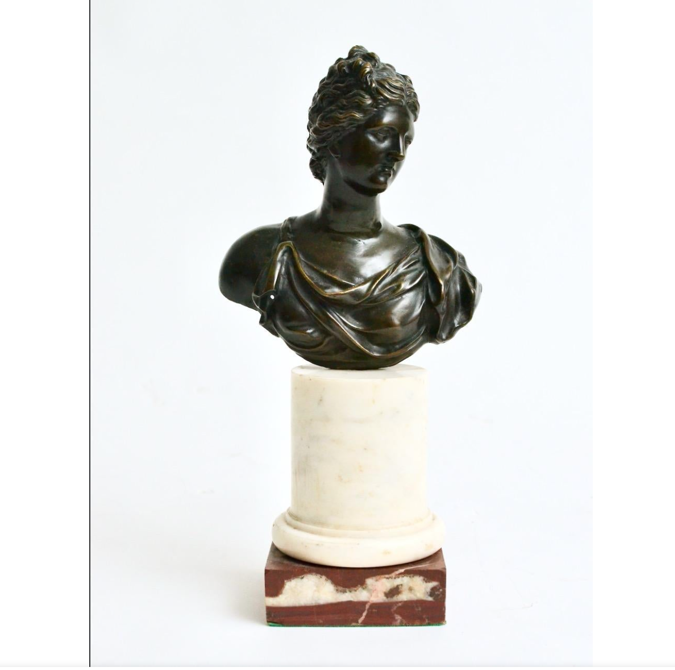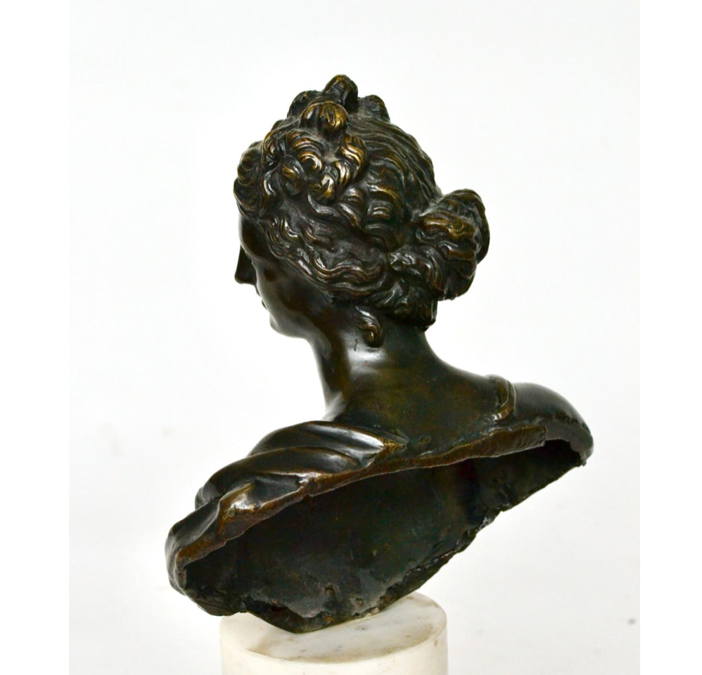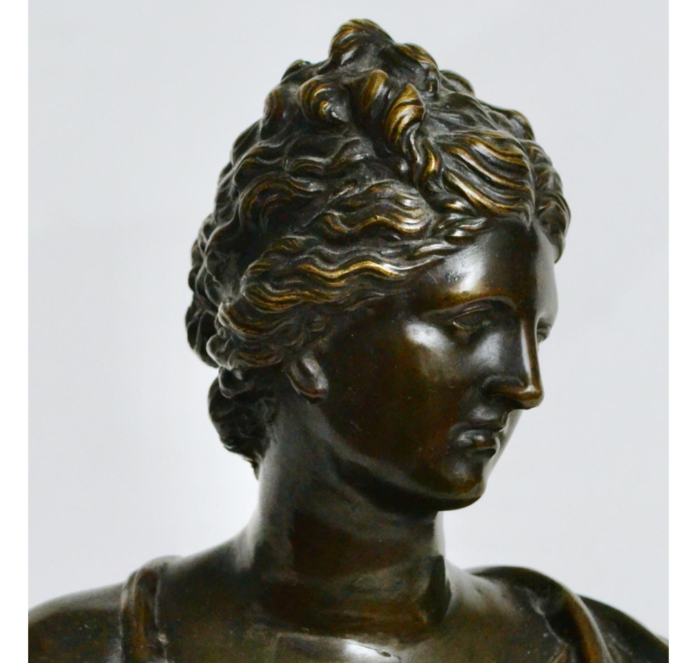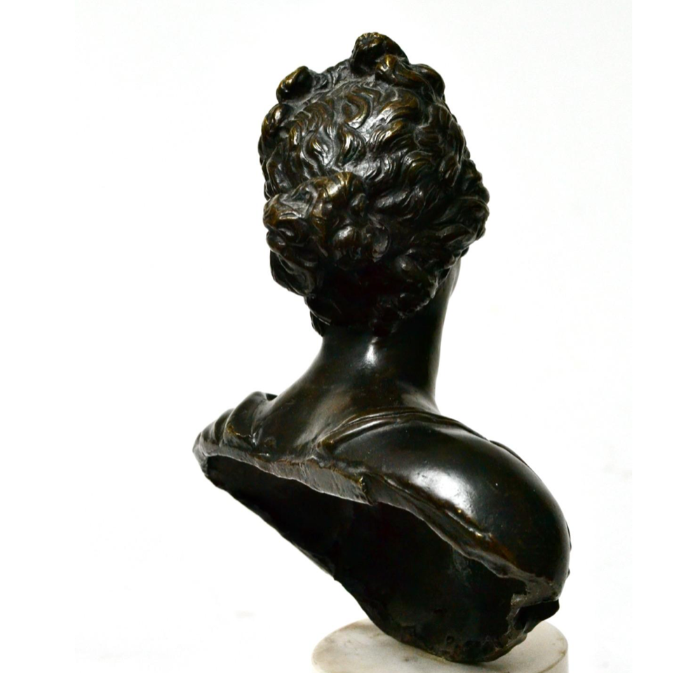 The Medici Venus is one of the most-copied and influential antiquities. The original is a full figure sculpture and whereas ours is a bust which is a bit unusual being made in bronze. It is more common to find the busts made in marble.