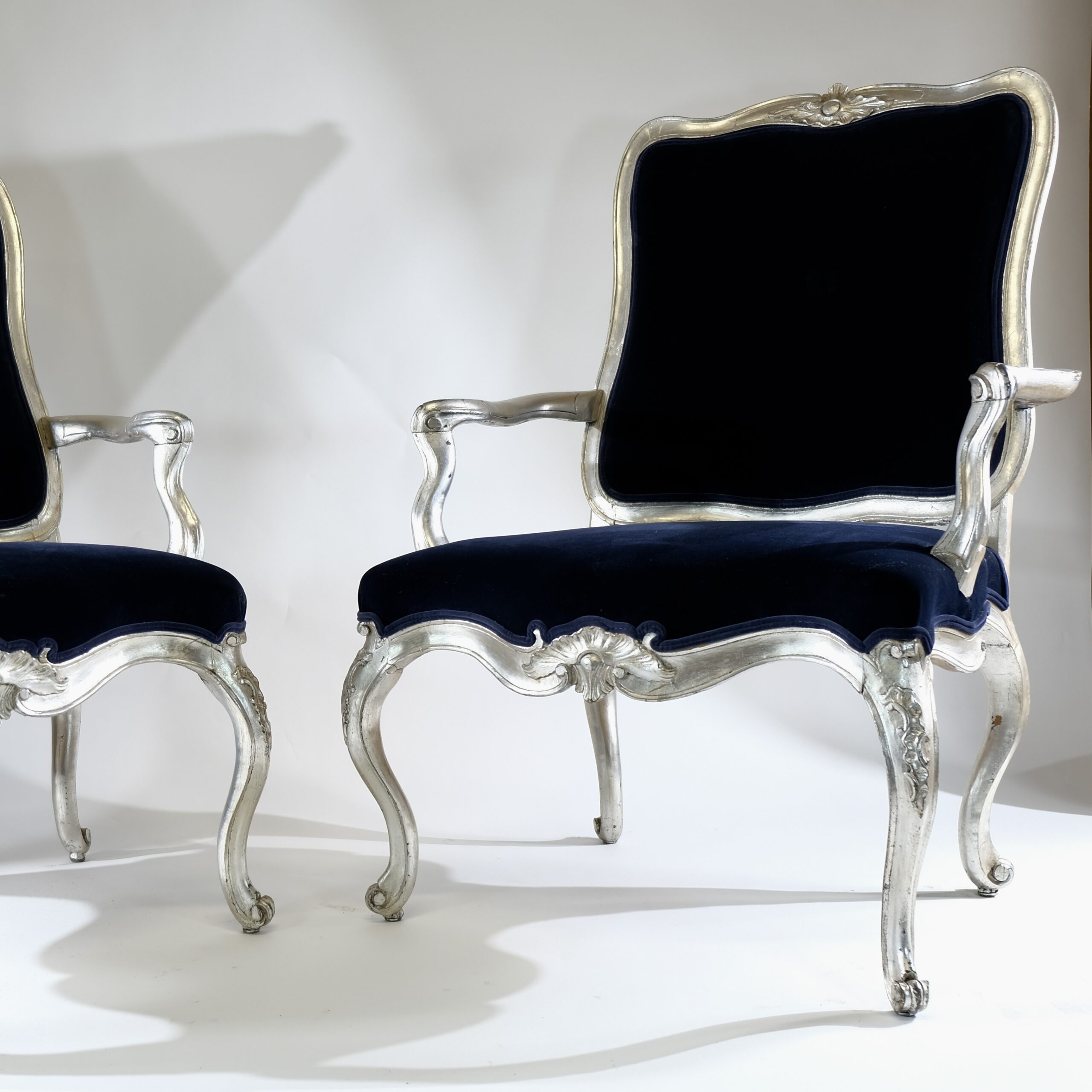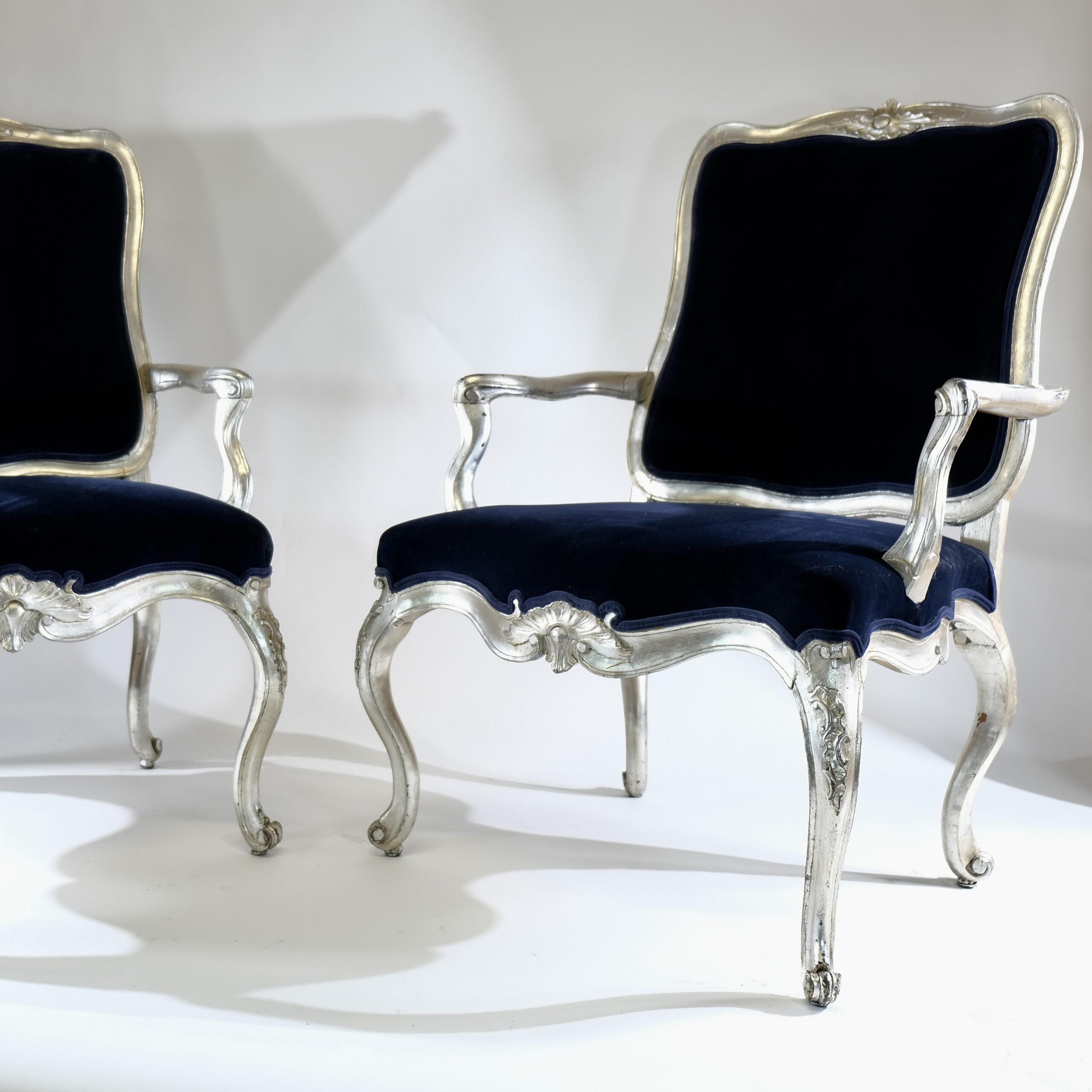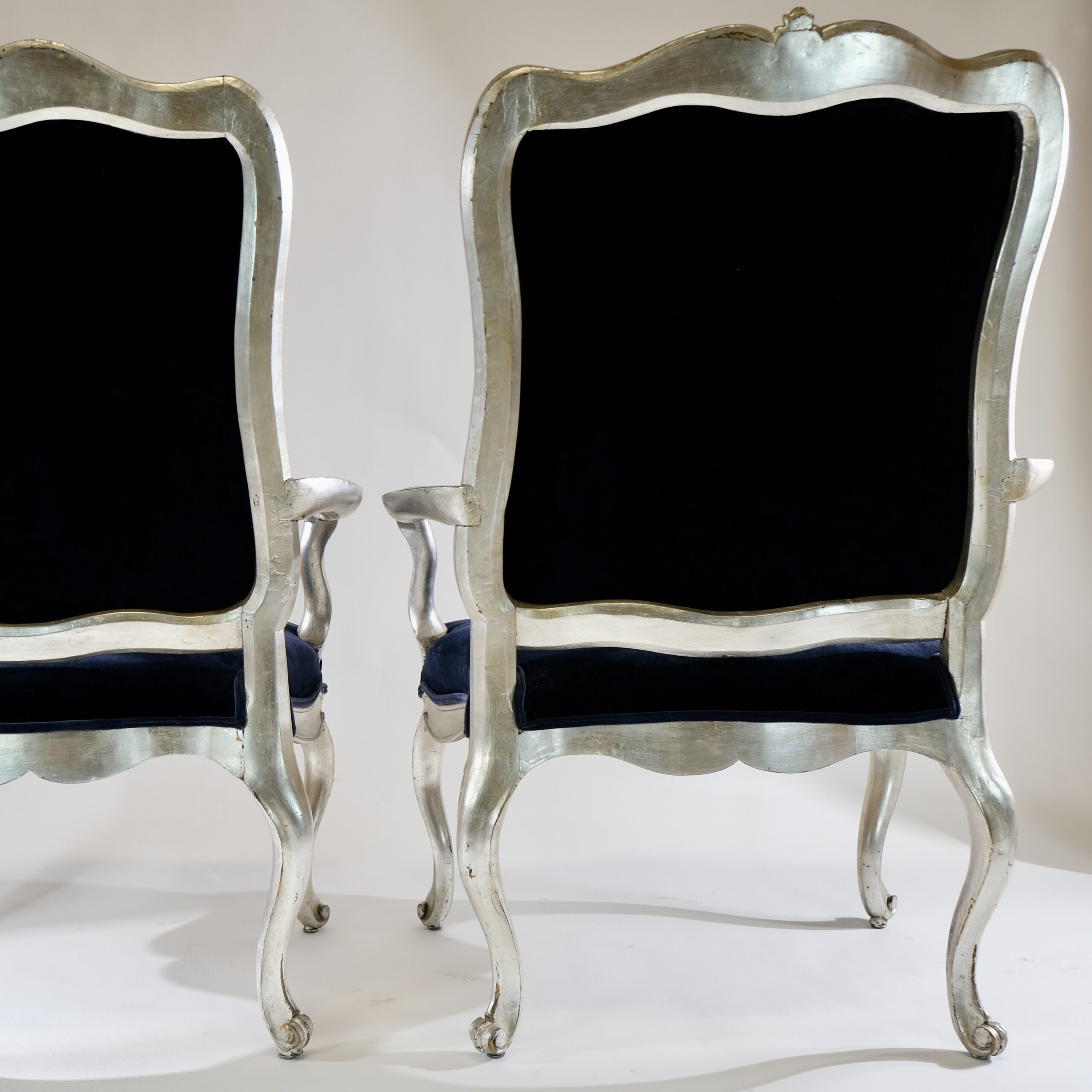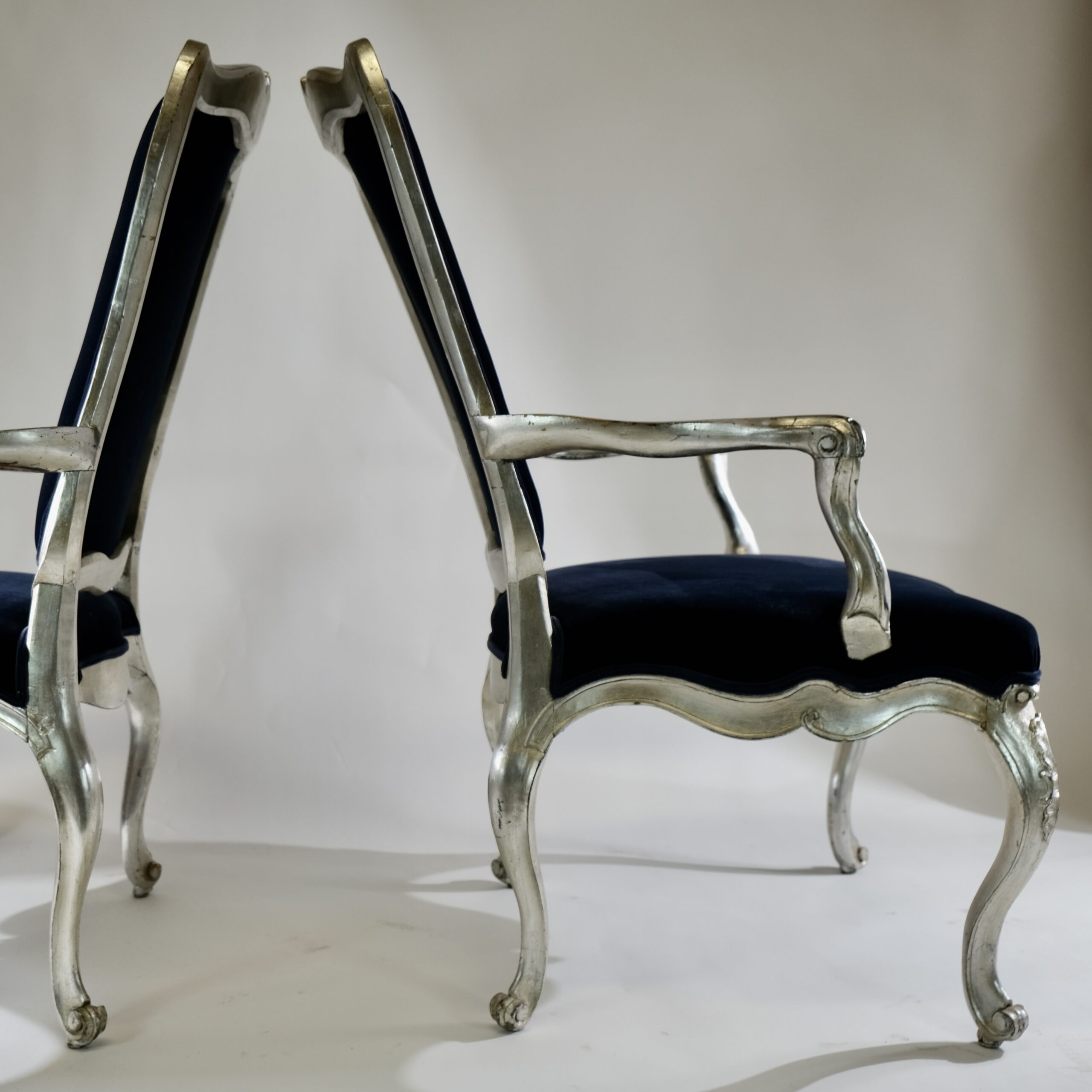 Whether placed in a formal living room, a stately library, or an elegant dining room, silvered Rococo armchairs serve as statement pieces, exuding timeless charm and refinement while adding a touch of old-world glamour to any interior space.