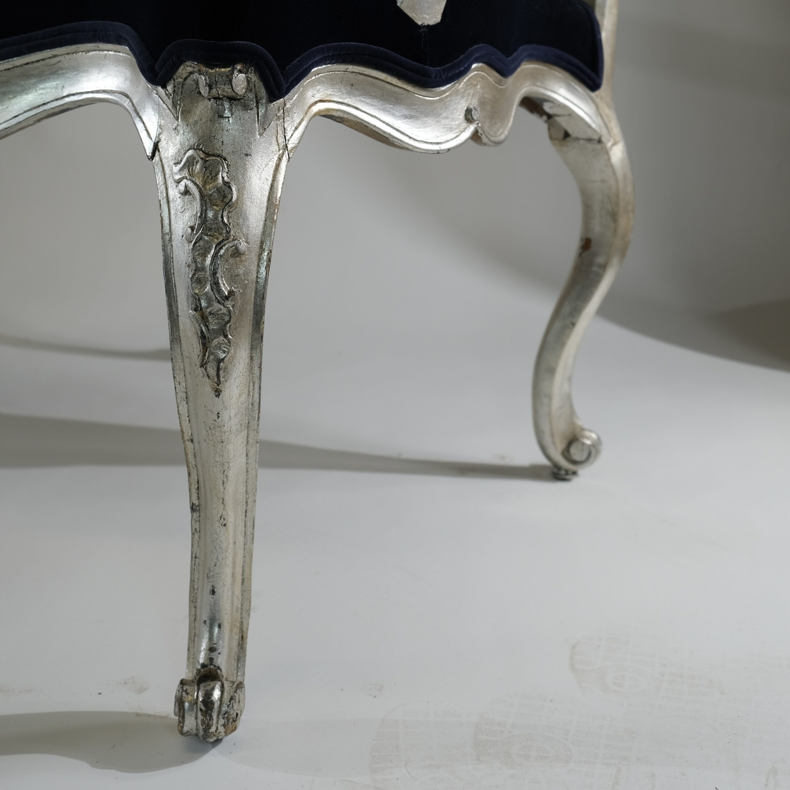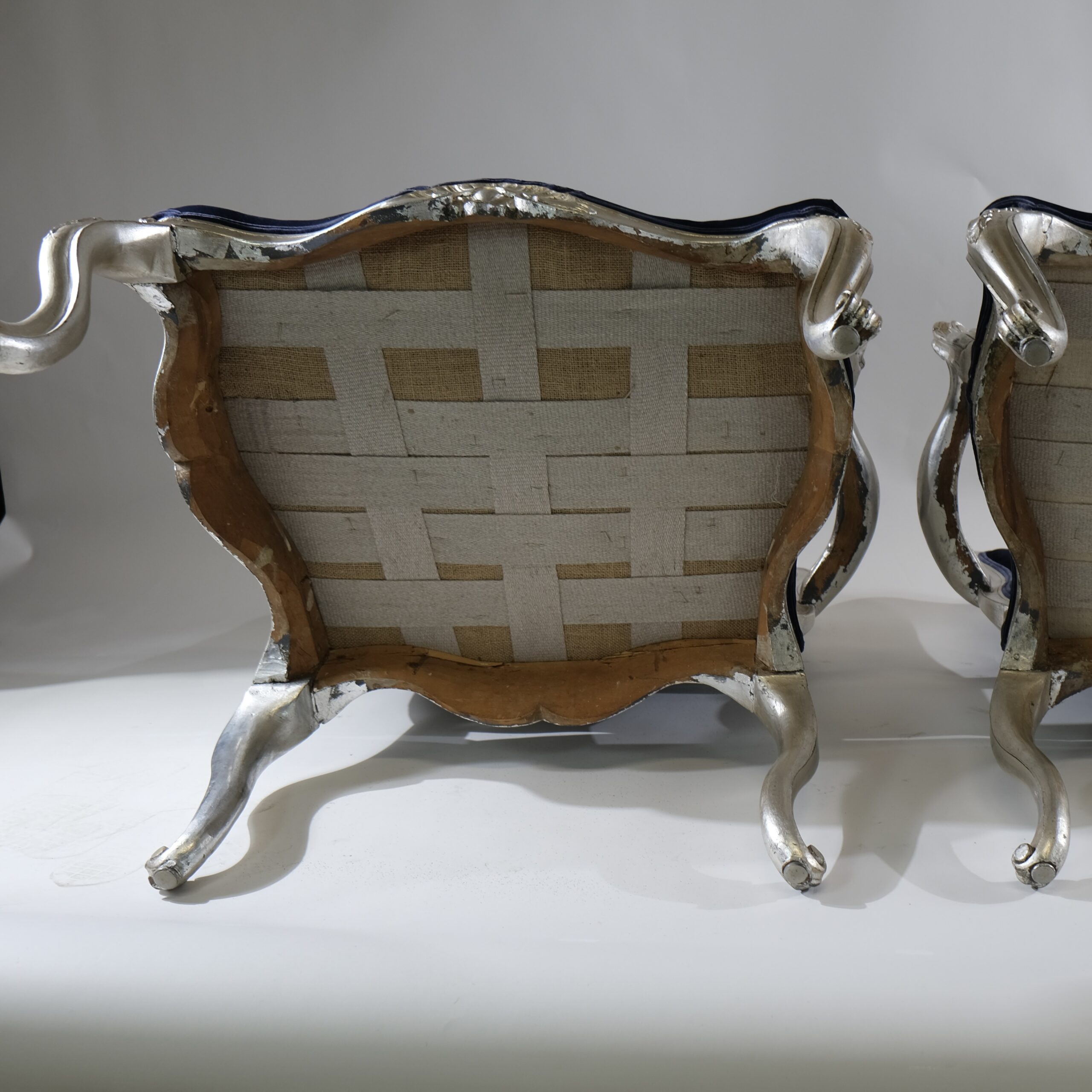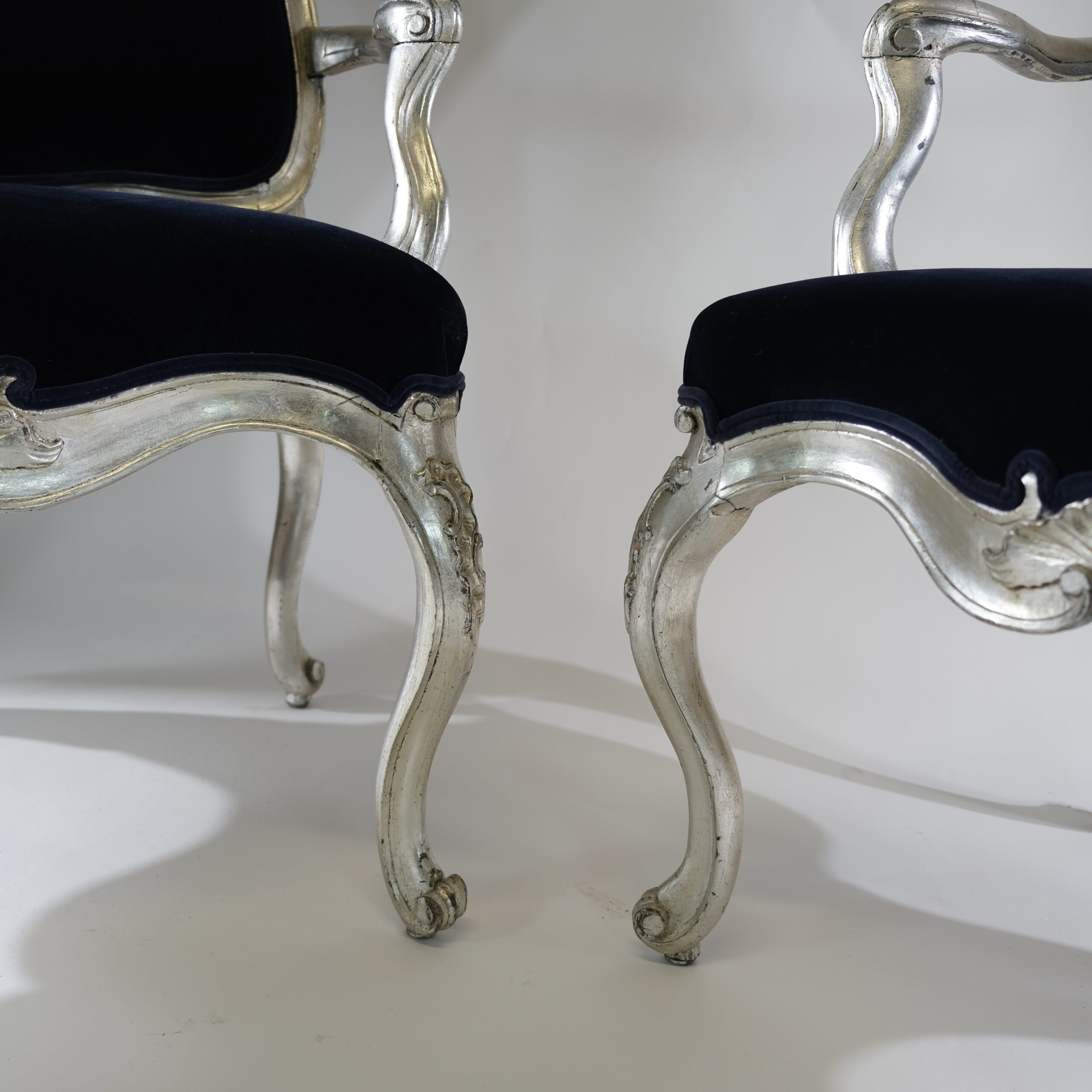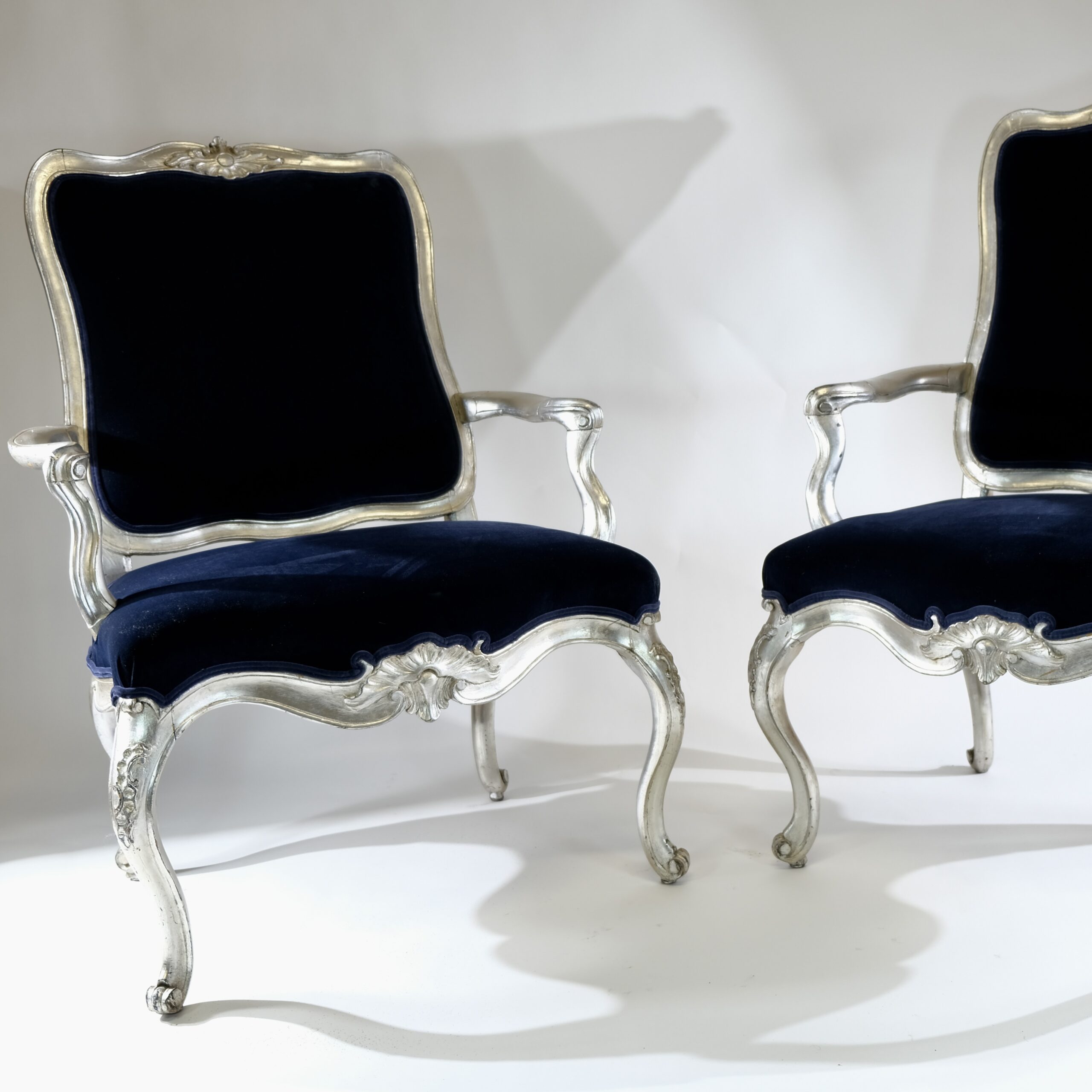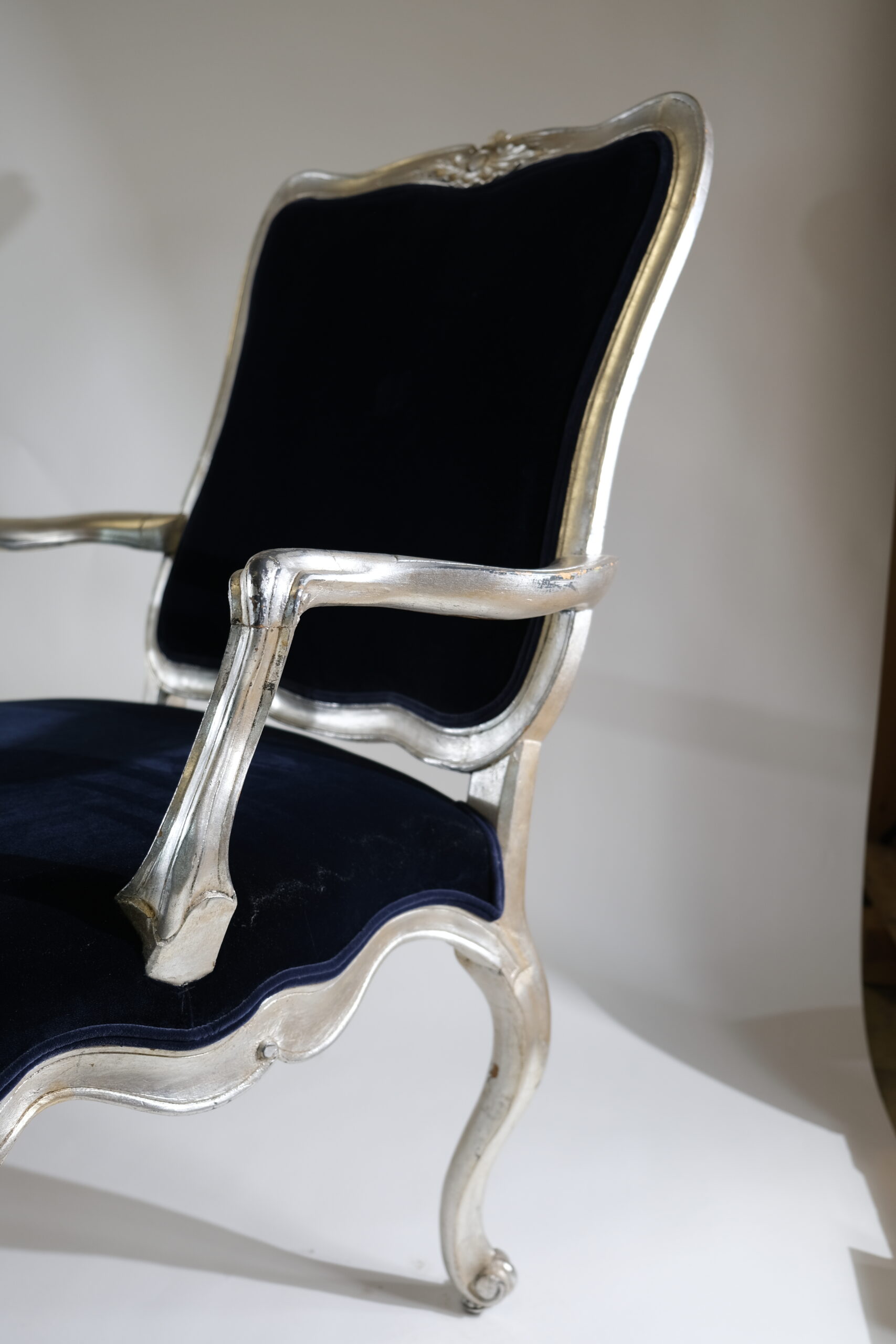Whether placed in a formal living room, a stately library, or an elegant dining room, silvered Rococo armchairs serve as statement pieces, exuding timeless charm and refinement while adding a touch of old-world glamour to any interior space.