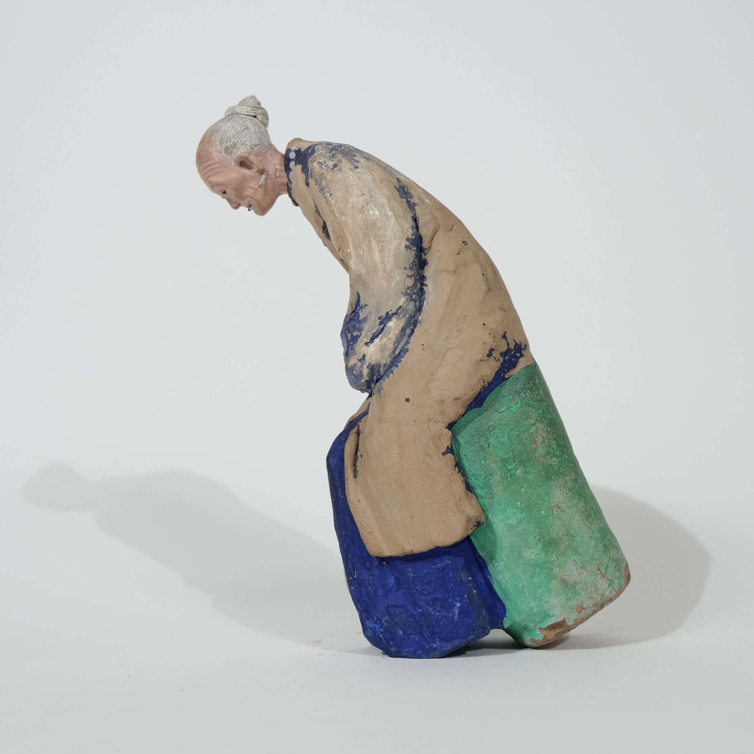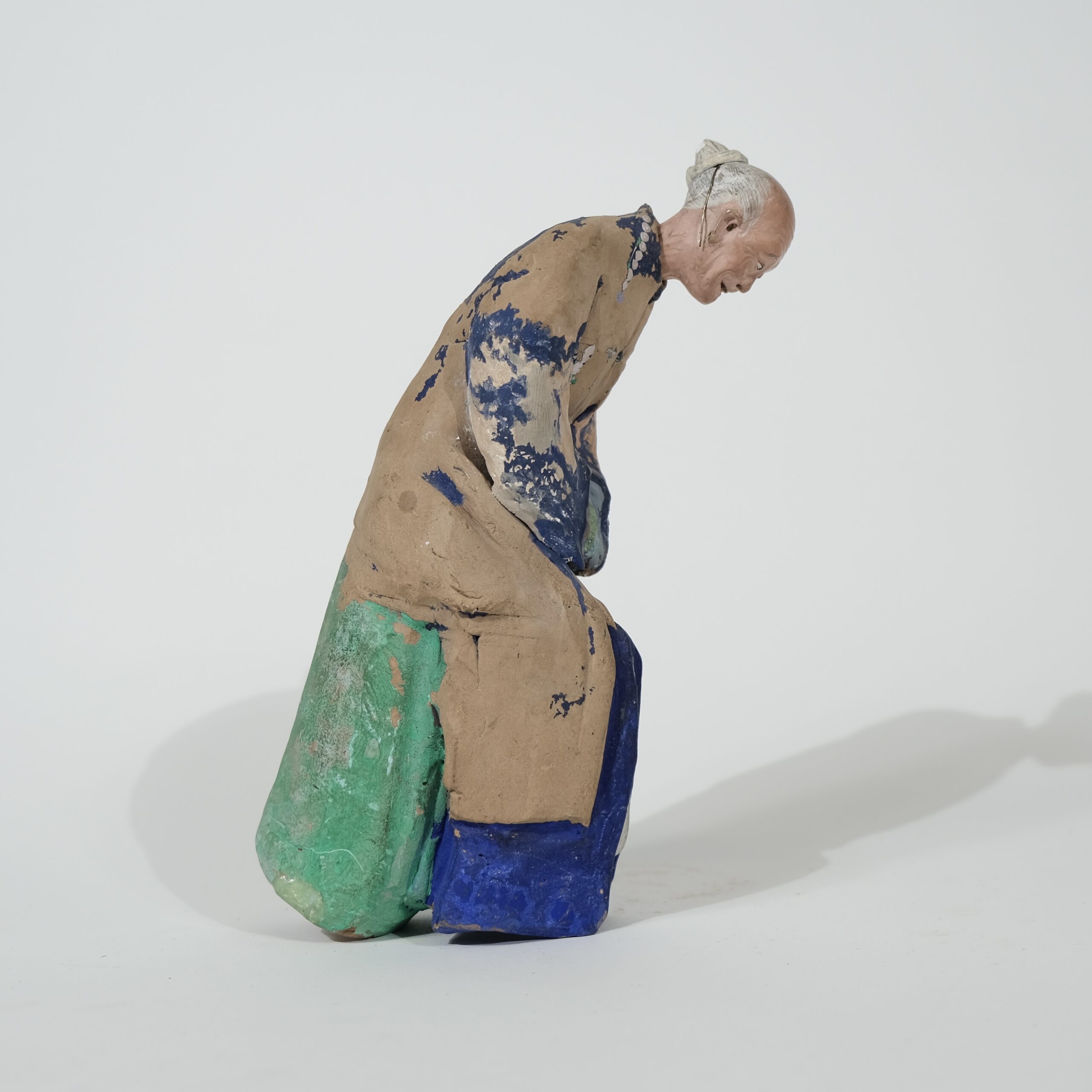 Chinese Sculptured And Painted Clay Figure Of An Elderly woman.19th century