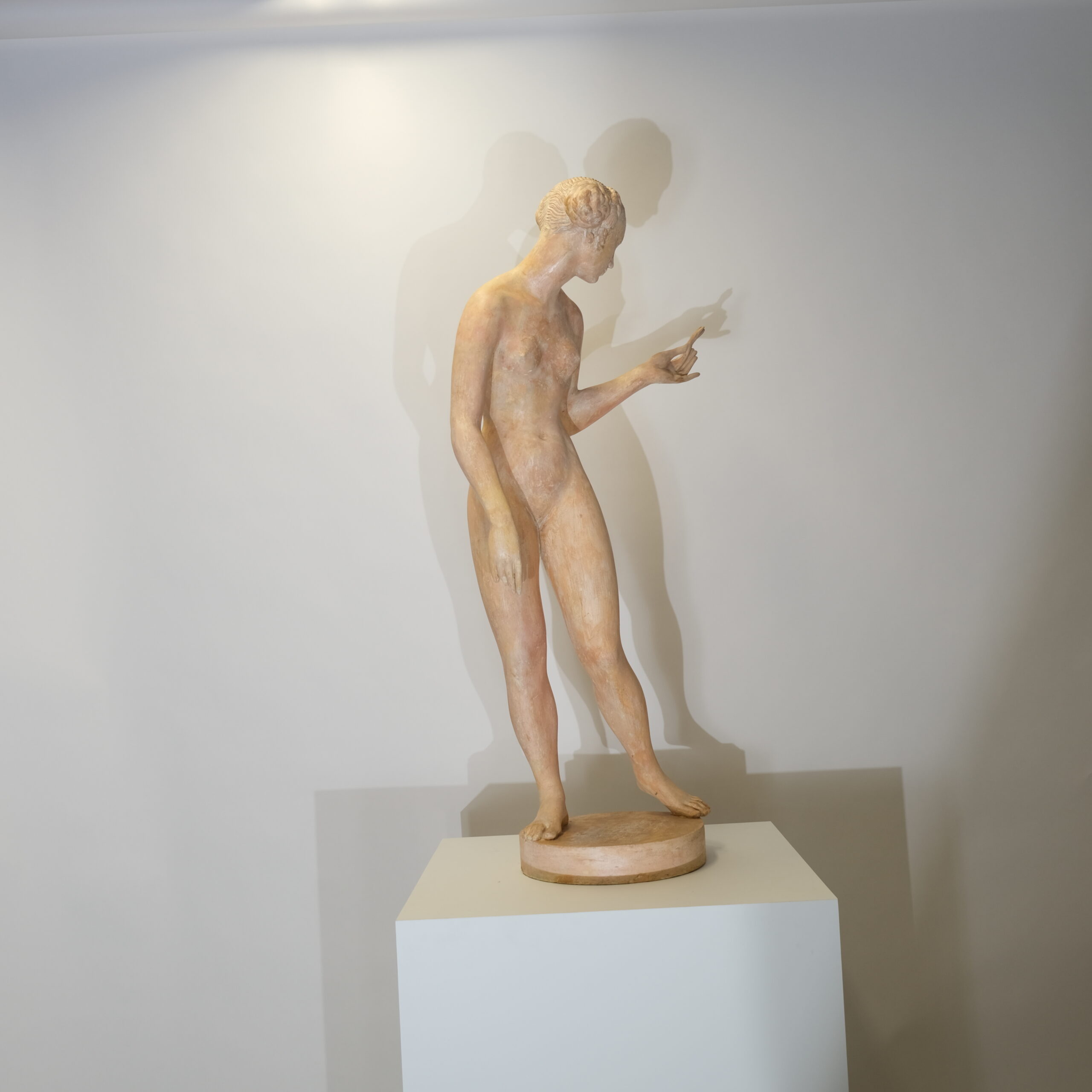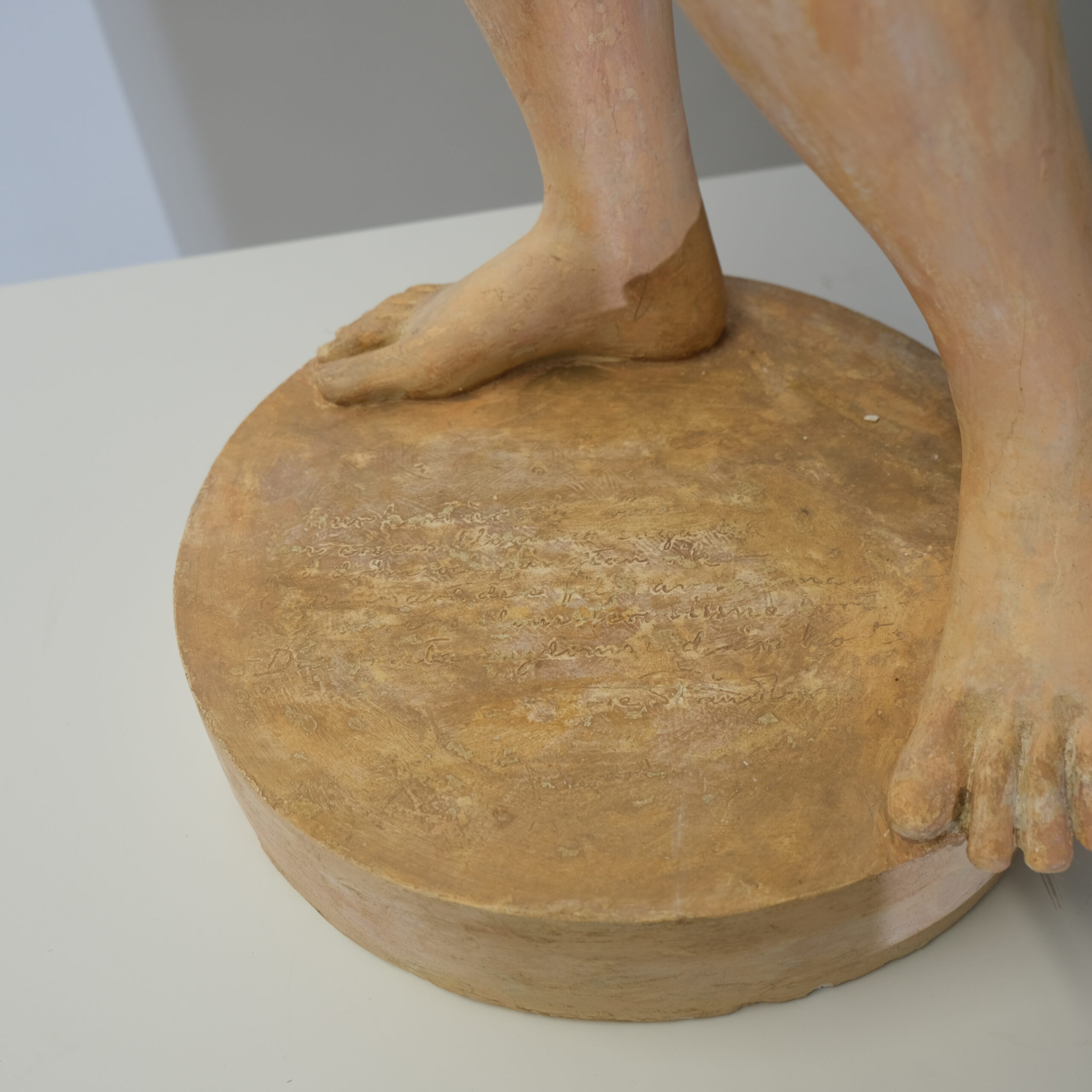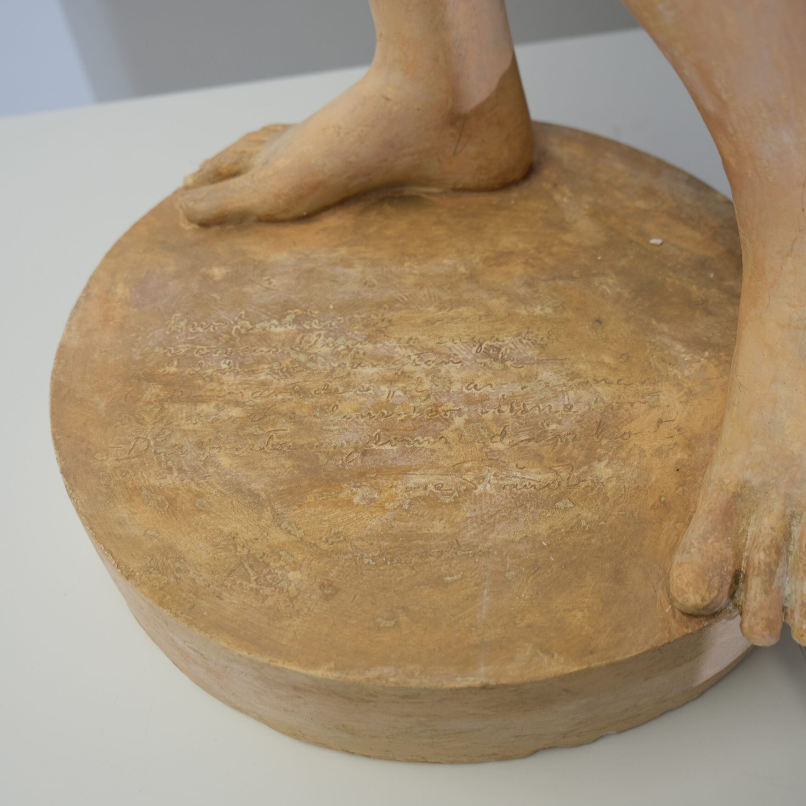 Made around 1918. This sculpture is probably an early example, made around 1918, perhaps the prototype or sample and is of the so-called first version, (see text further down). A very rare work by Strindberg in full size, the same size as the later bronze castings are made and which today can be found in some public places and art collections. There is a difference of a few centimeters and height as most do not have a bronze base and are mounted on other types of foundations such as marble. Thus, this sculpture is a few centimeters higher with its plaster base. There are some older restorations.