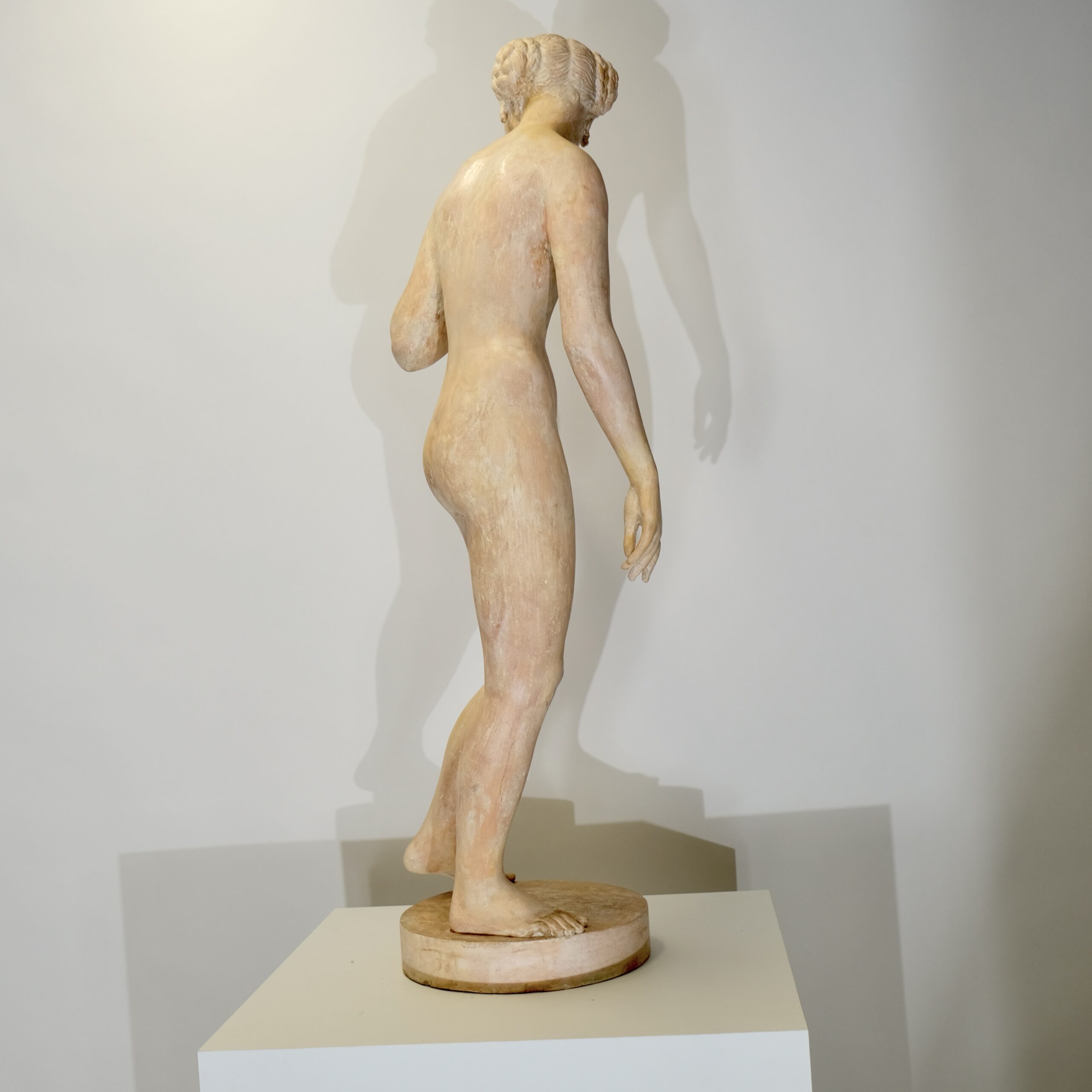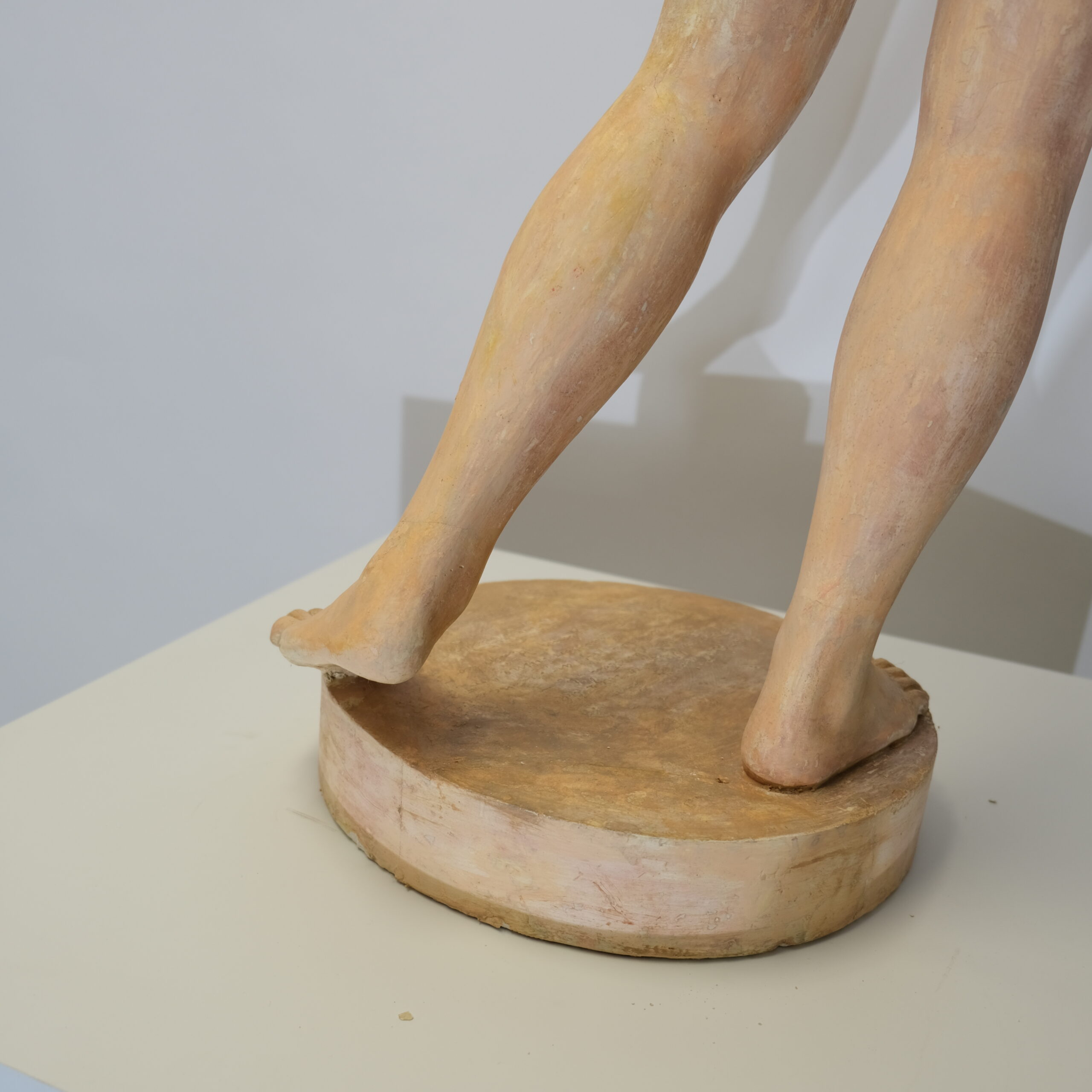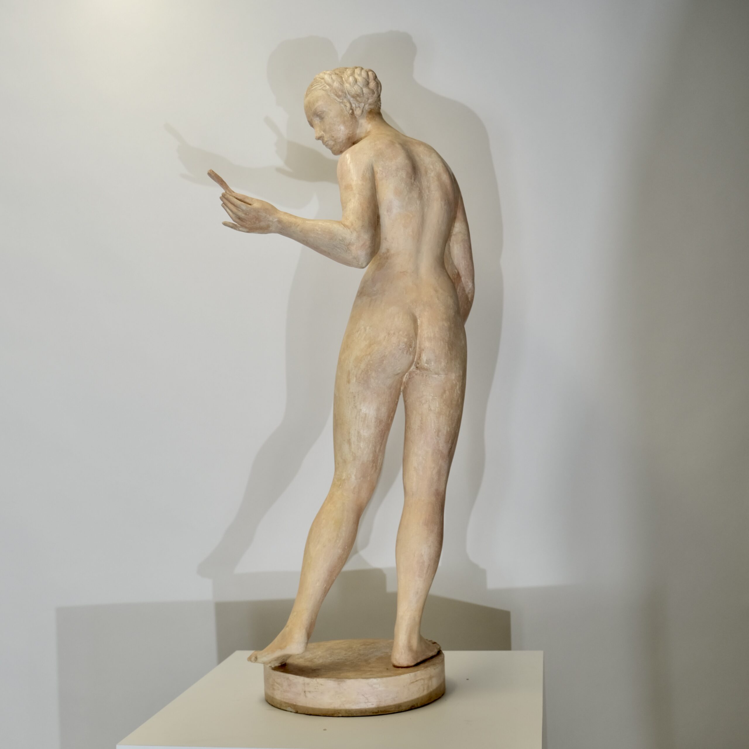 Made around 1918. This sculpture is probably an early example, made around 1918, perhaps the prototype or sample and is of the so-called first version, (see text further down). A very rare work by Strindberg in full size, the same size as the later bronze castings are made and which today can be found in some public places and art collections. There is a difference of a few centimeters and height as most do not have a bronze base and are mounted on other types of foundations such as marble. Thus, this sculpture is a few centimeters higher with its plaster base. There are some older restorations.