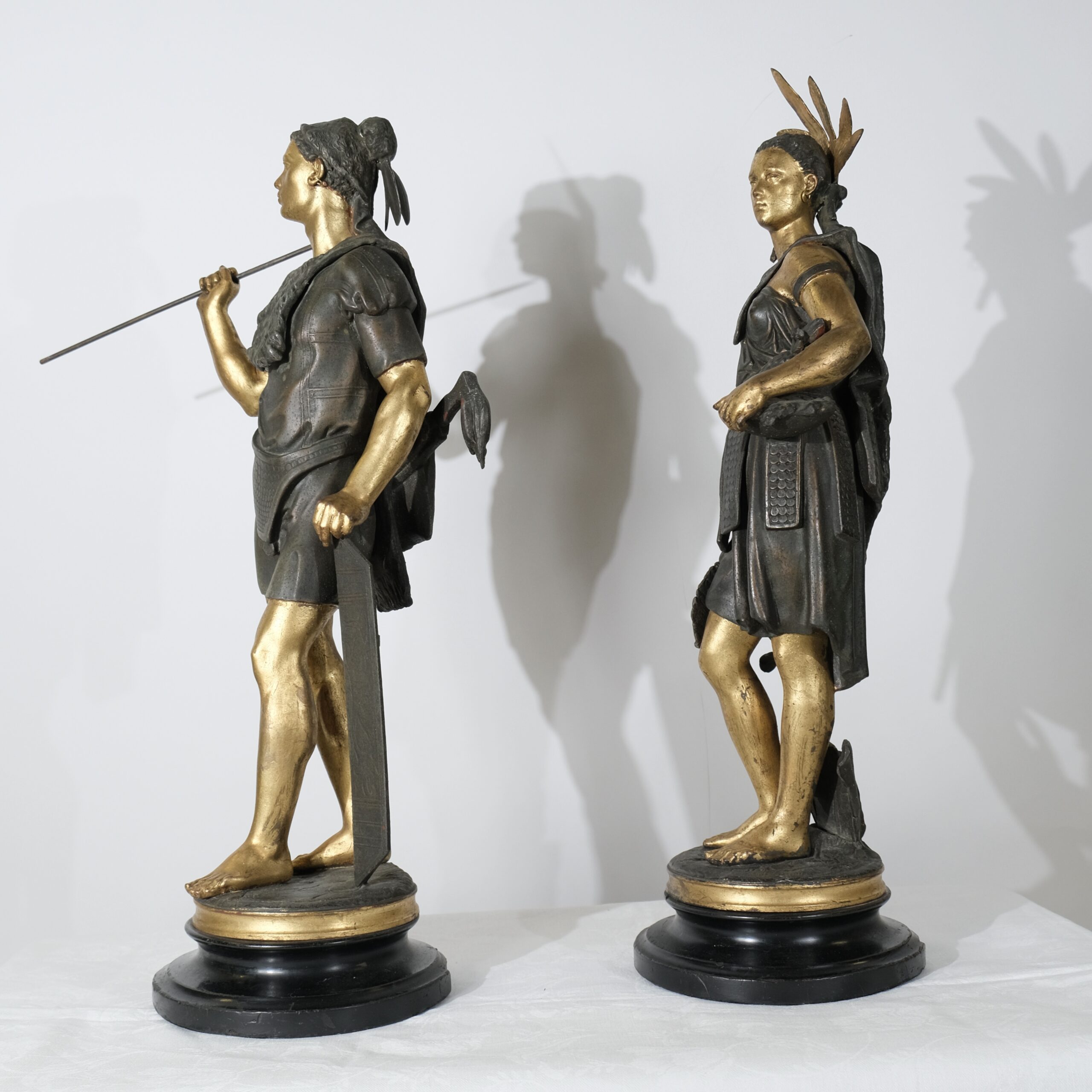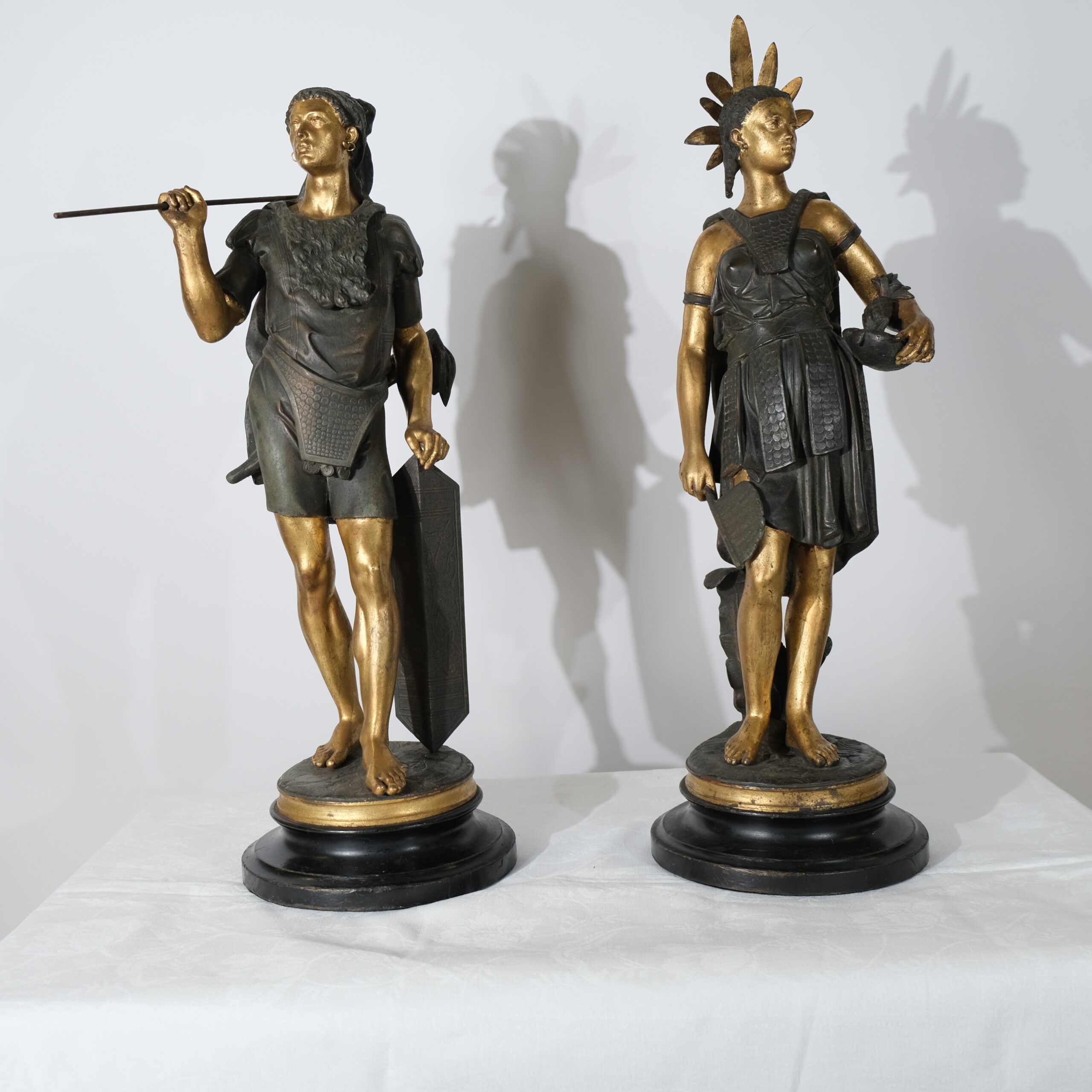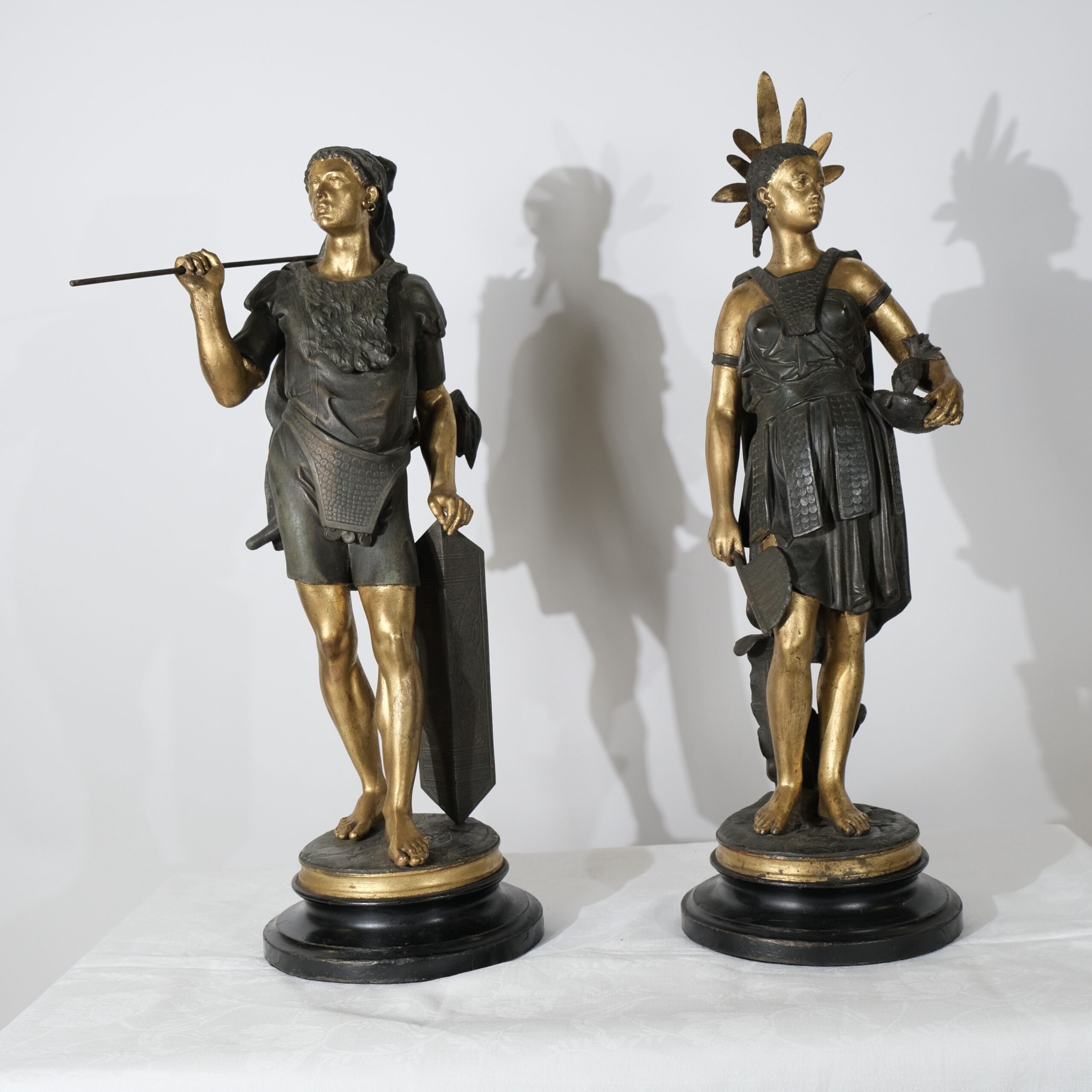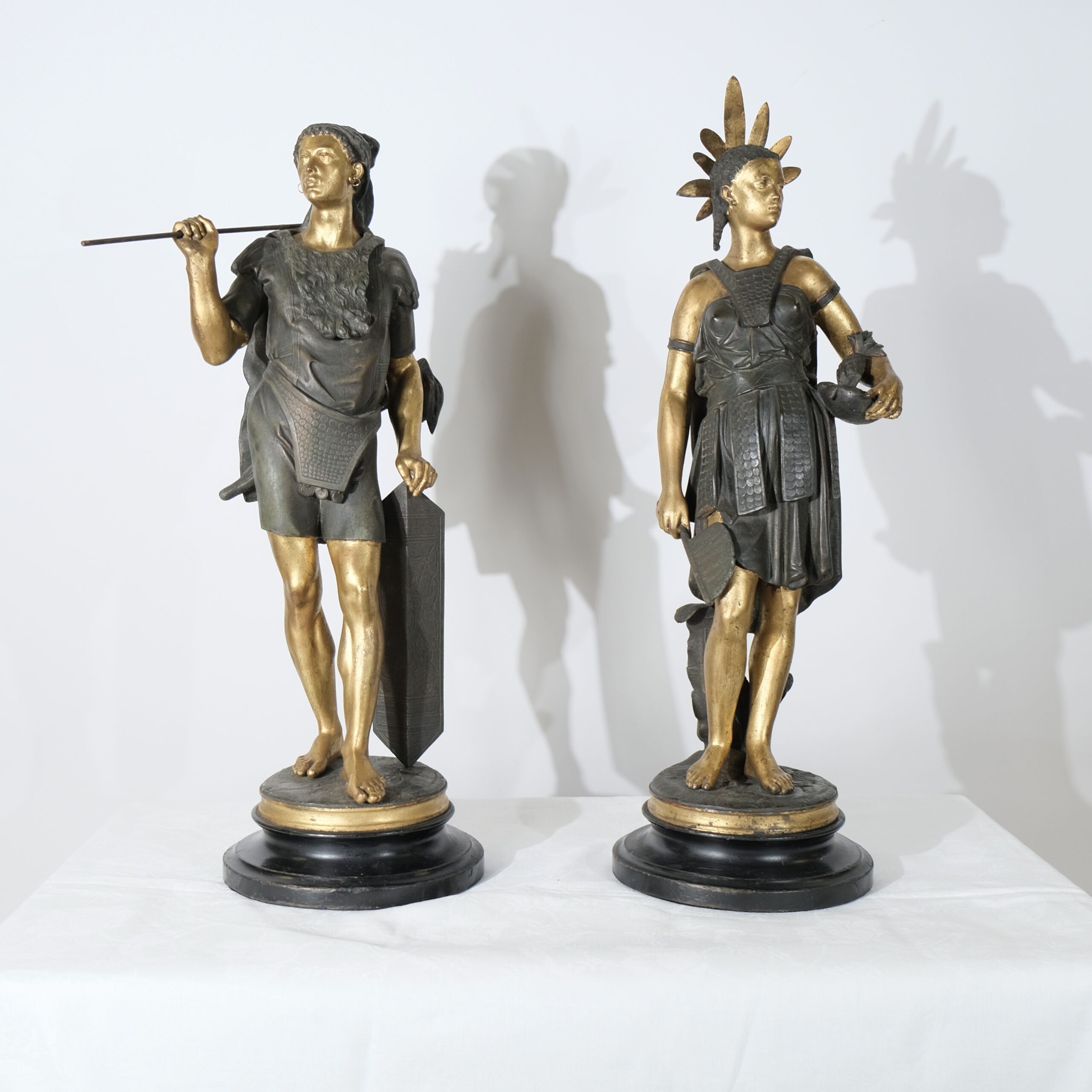 “Guerrier des Amériques”. Pair of sculptures signed J J Salmson (1823-1902)