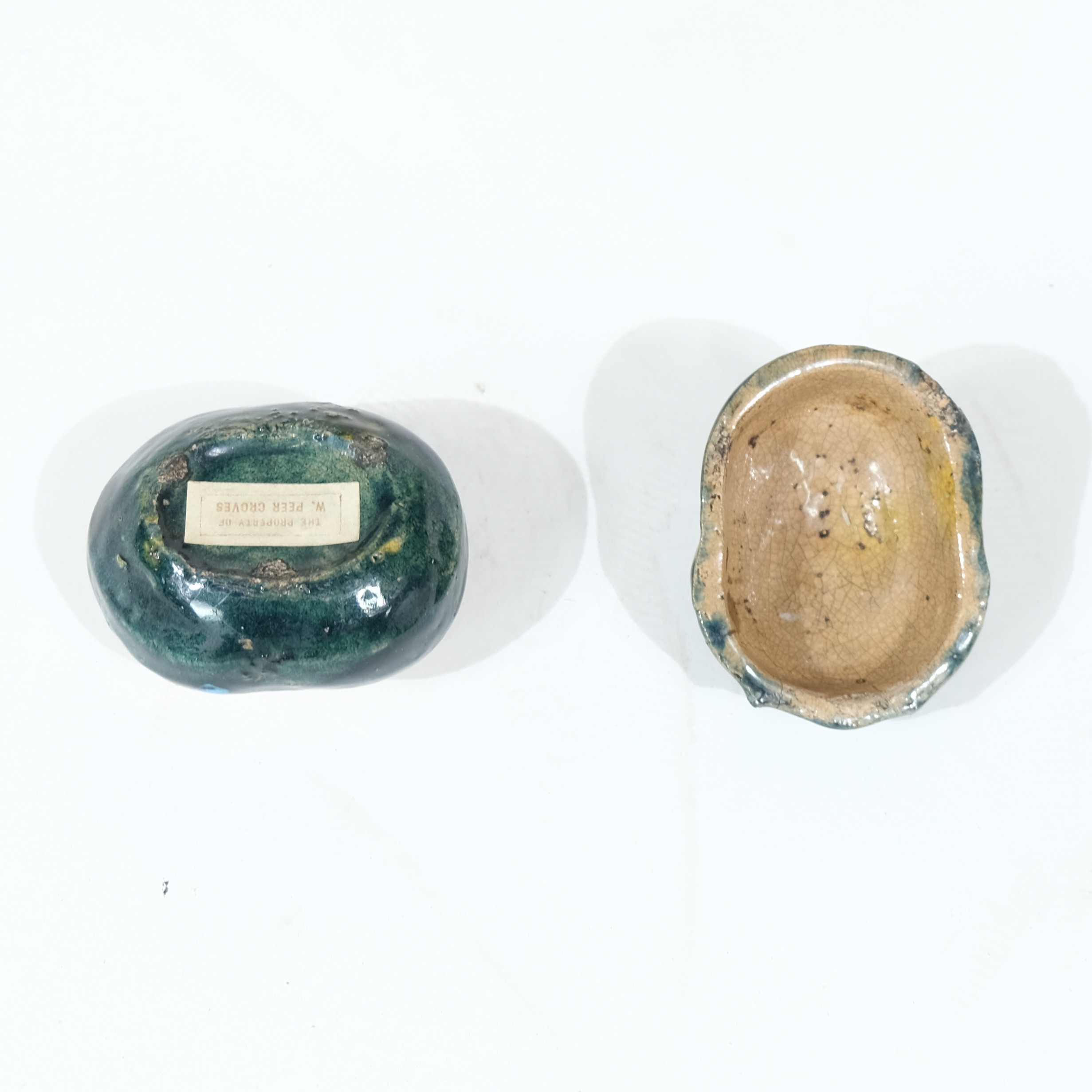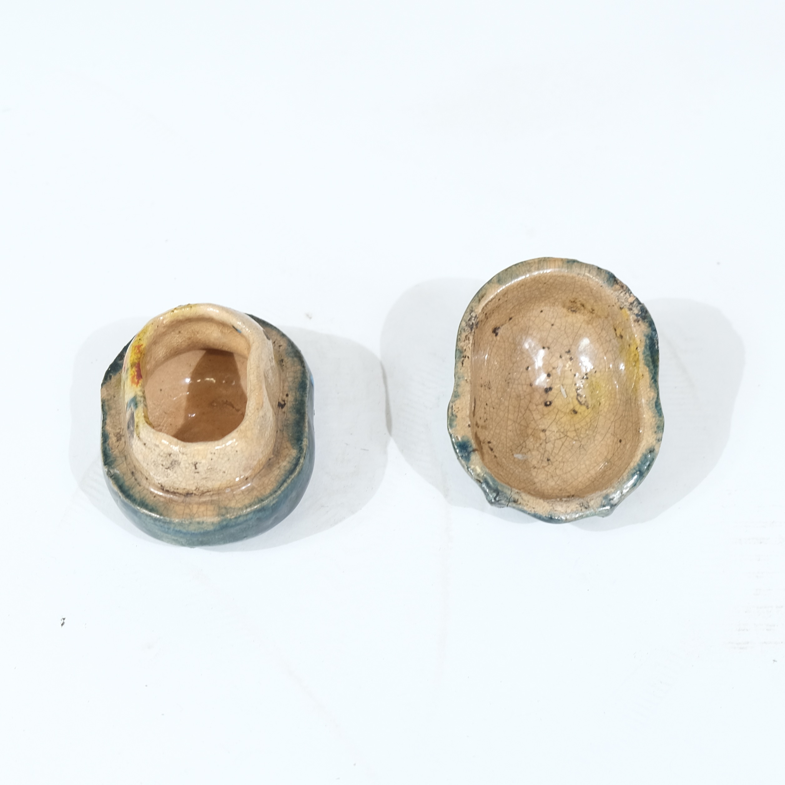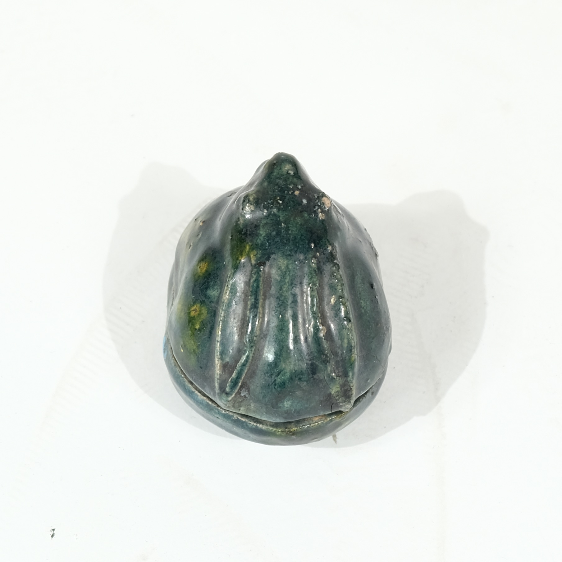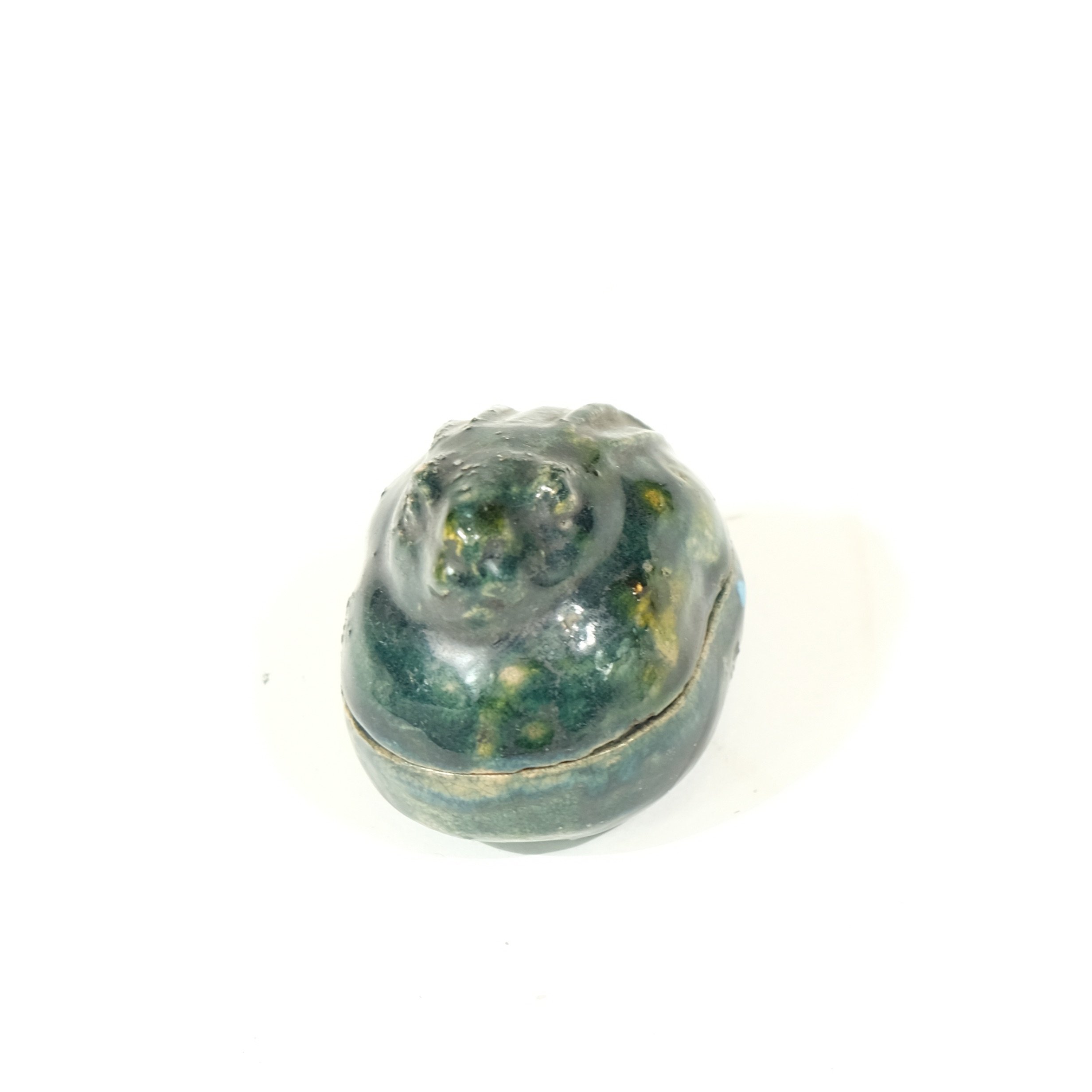 A charming small box with lid, Japanese and made in the mid 19th c in the shape of a rabbit. The box is glazed with a turquoise color.