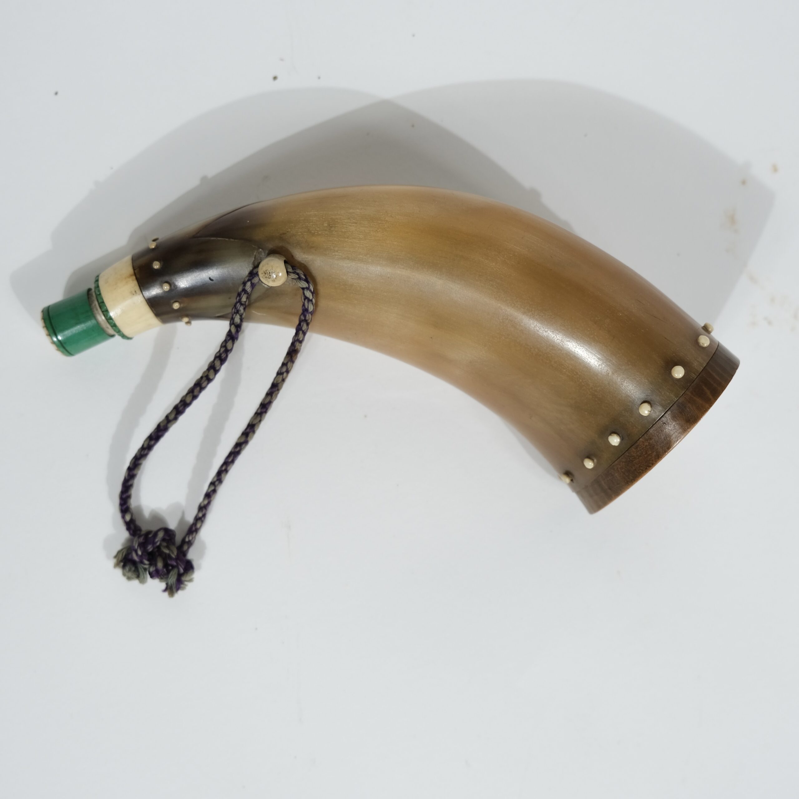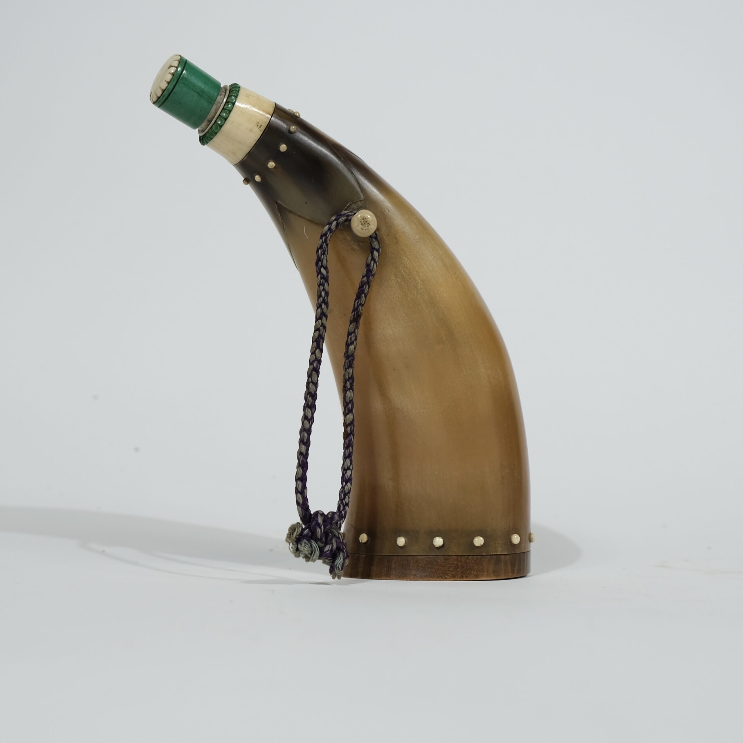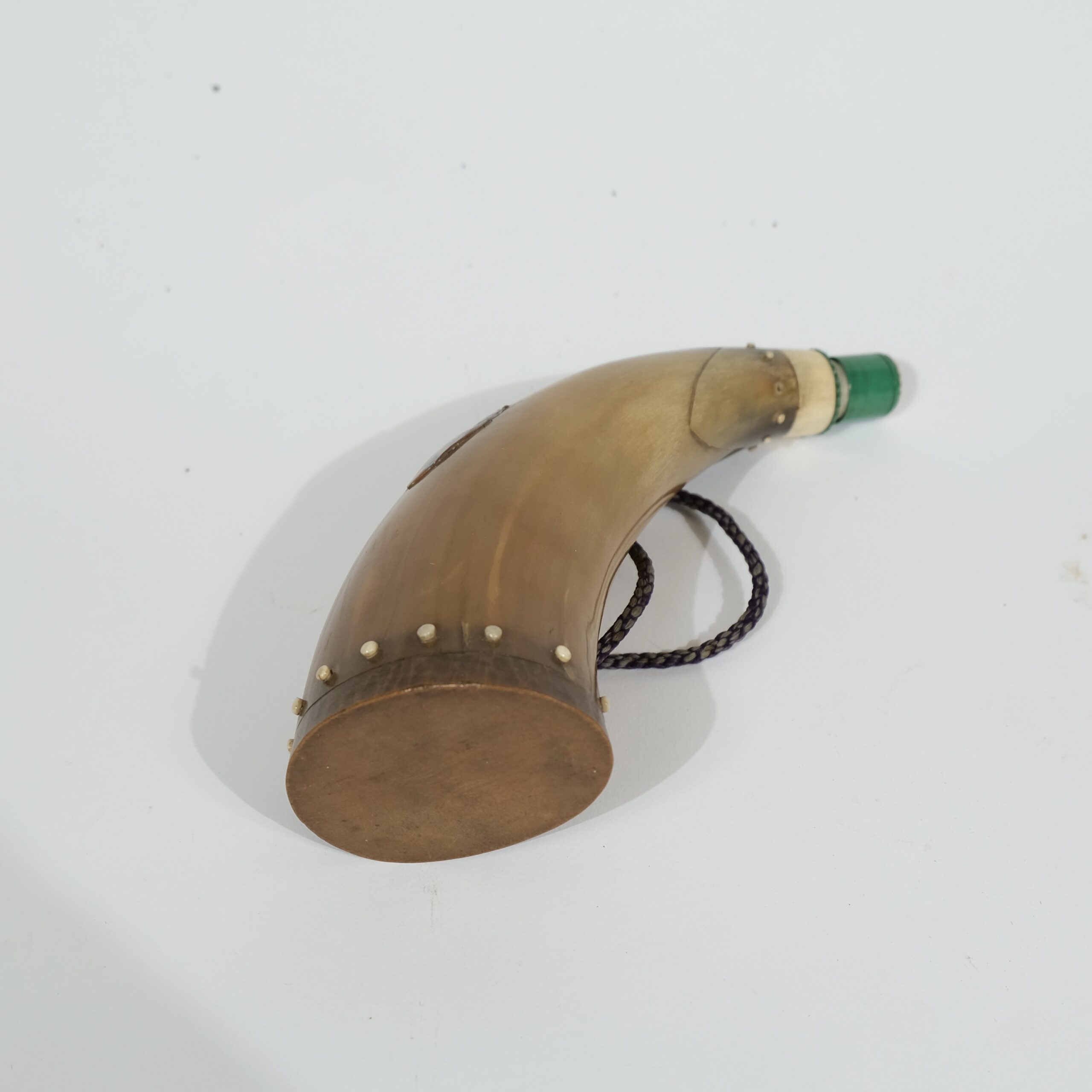 A fantastic Japanese powder horn made of horn , bone and mother of pearl. On the horn there is inlay of a grasshopper. A proof of the Japanese expertise in craftsmanship