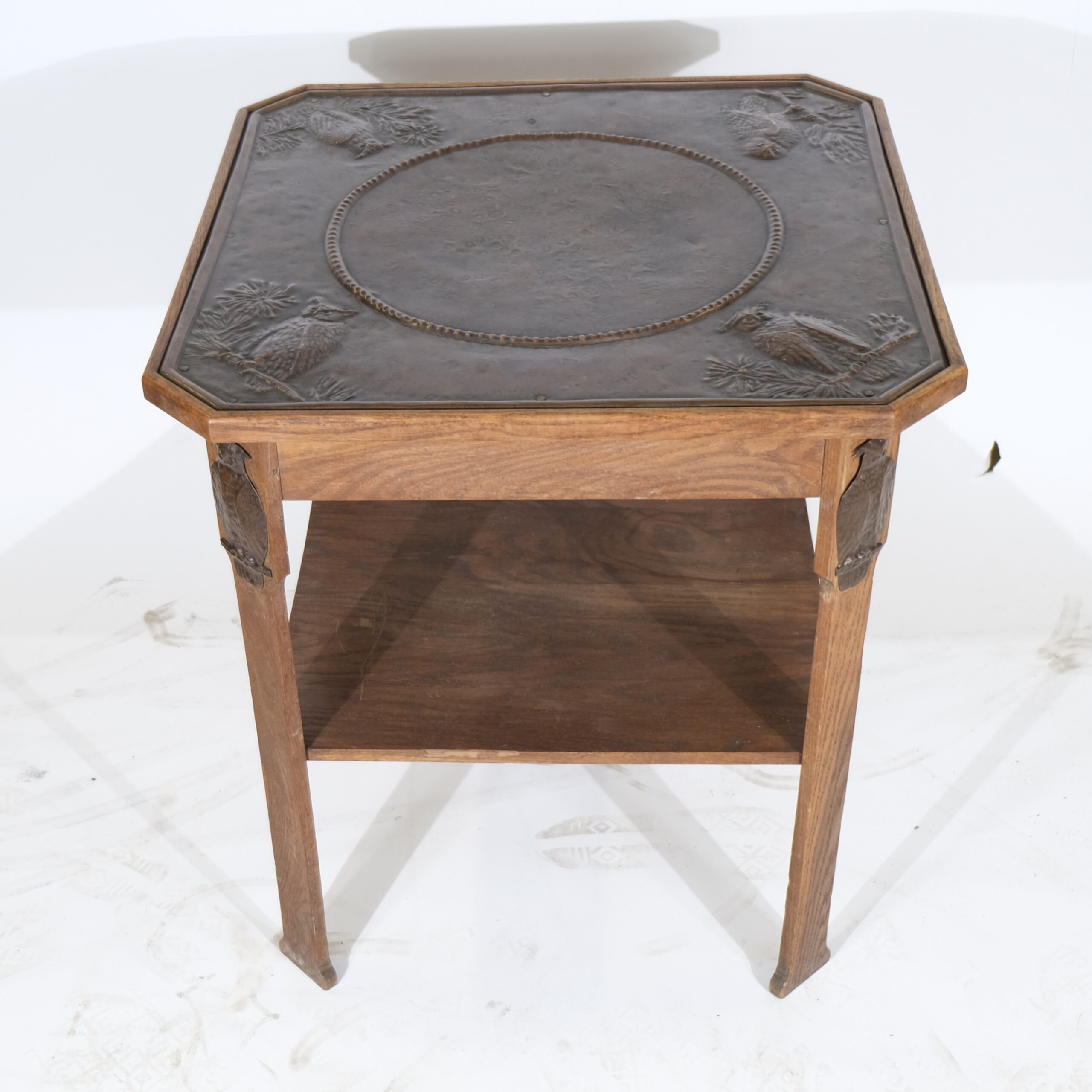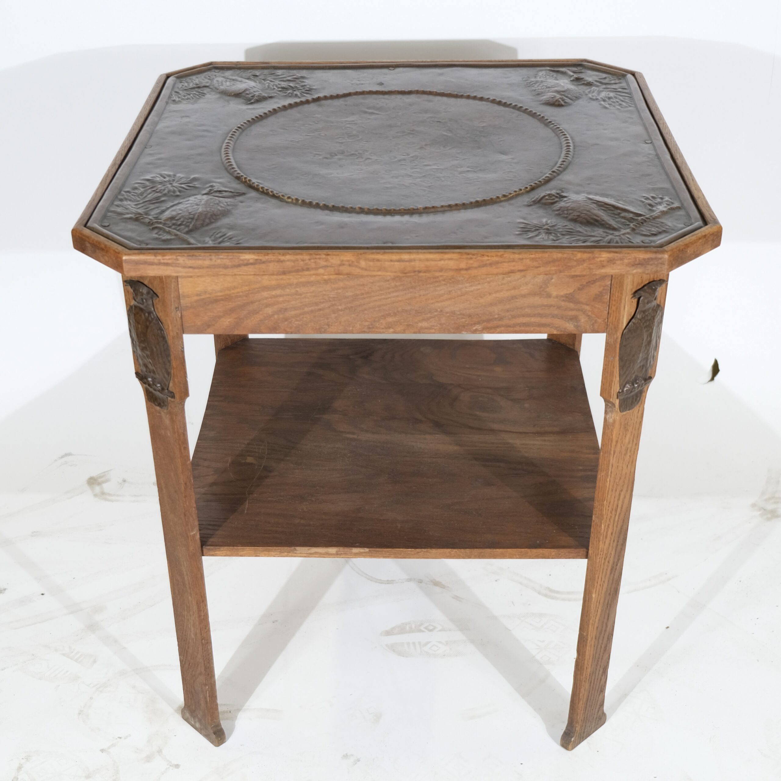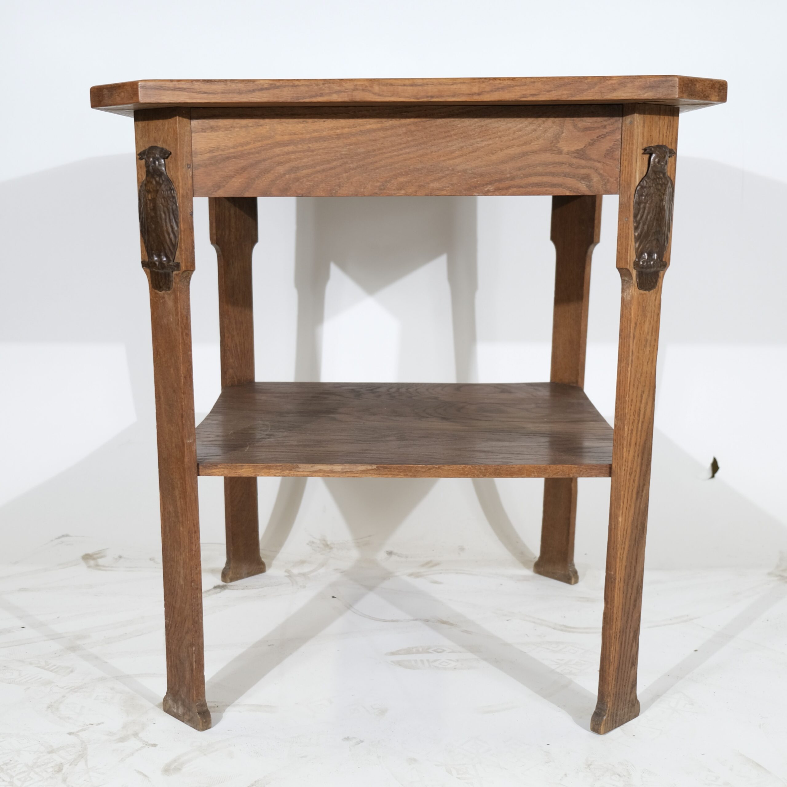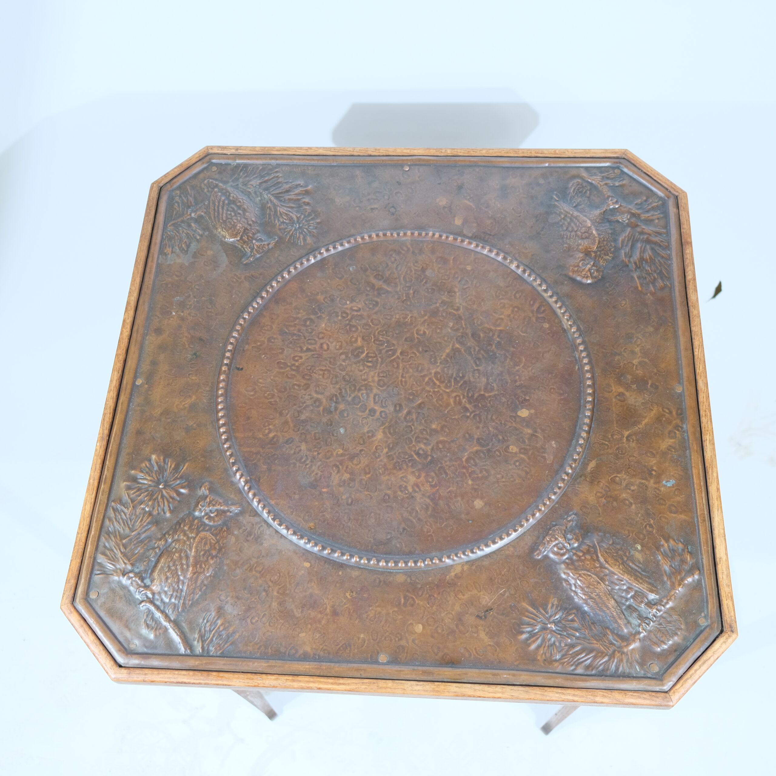 Jugend table, oak and copper with motives of owls. Harald Linder (1880-1945)