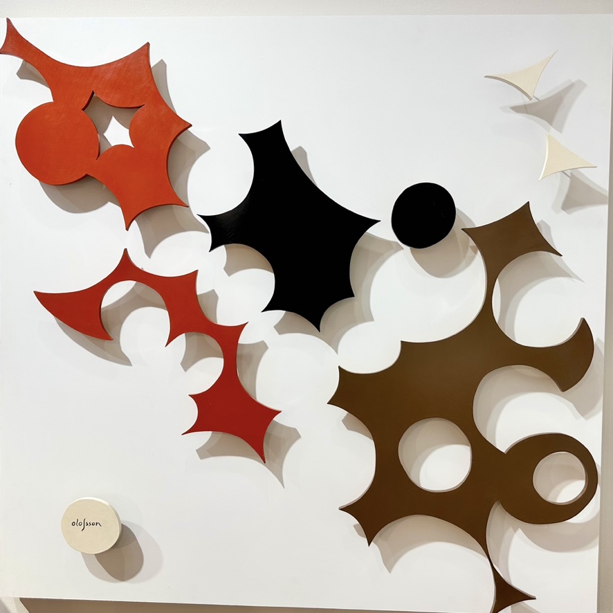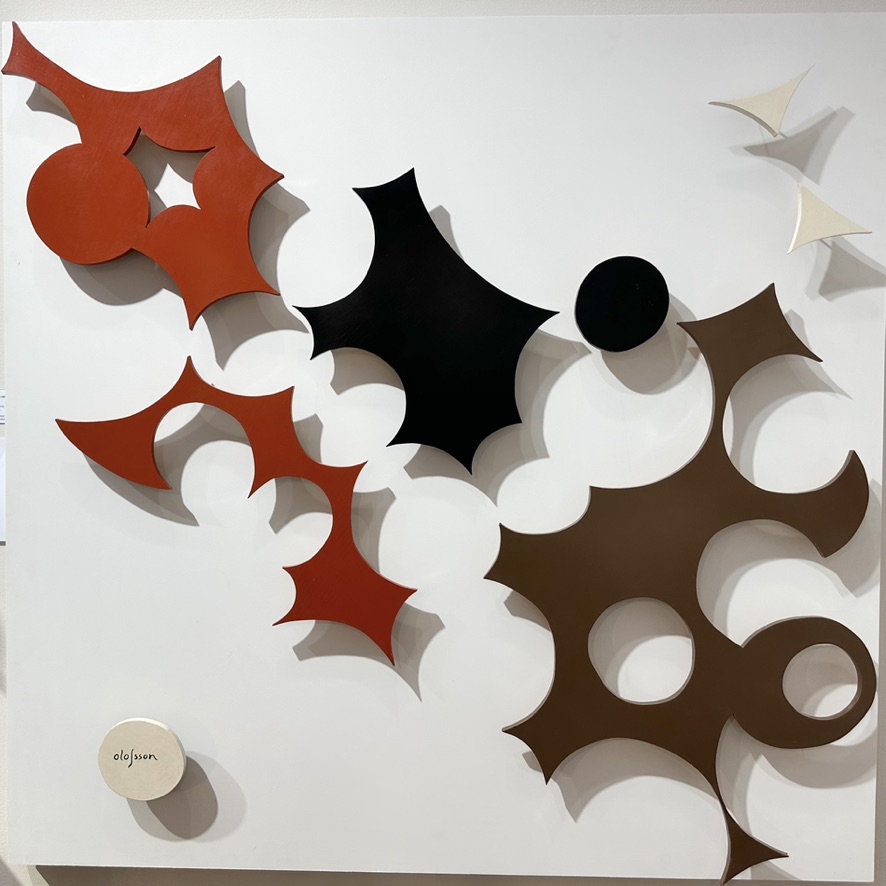 This is one of Pierre Olofssons important works. It was created in 1964 for the Post Office in Kiruna, North of Sweden. The wall sculpture covered a long wall at the office and consists of seven separate units. The sculpture is seen on a whole page in Millroths book about the life works of Pierre Olofsson.