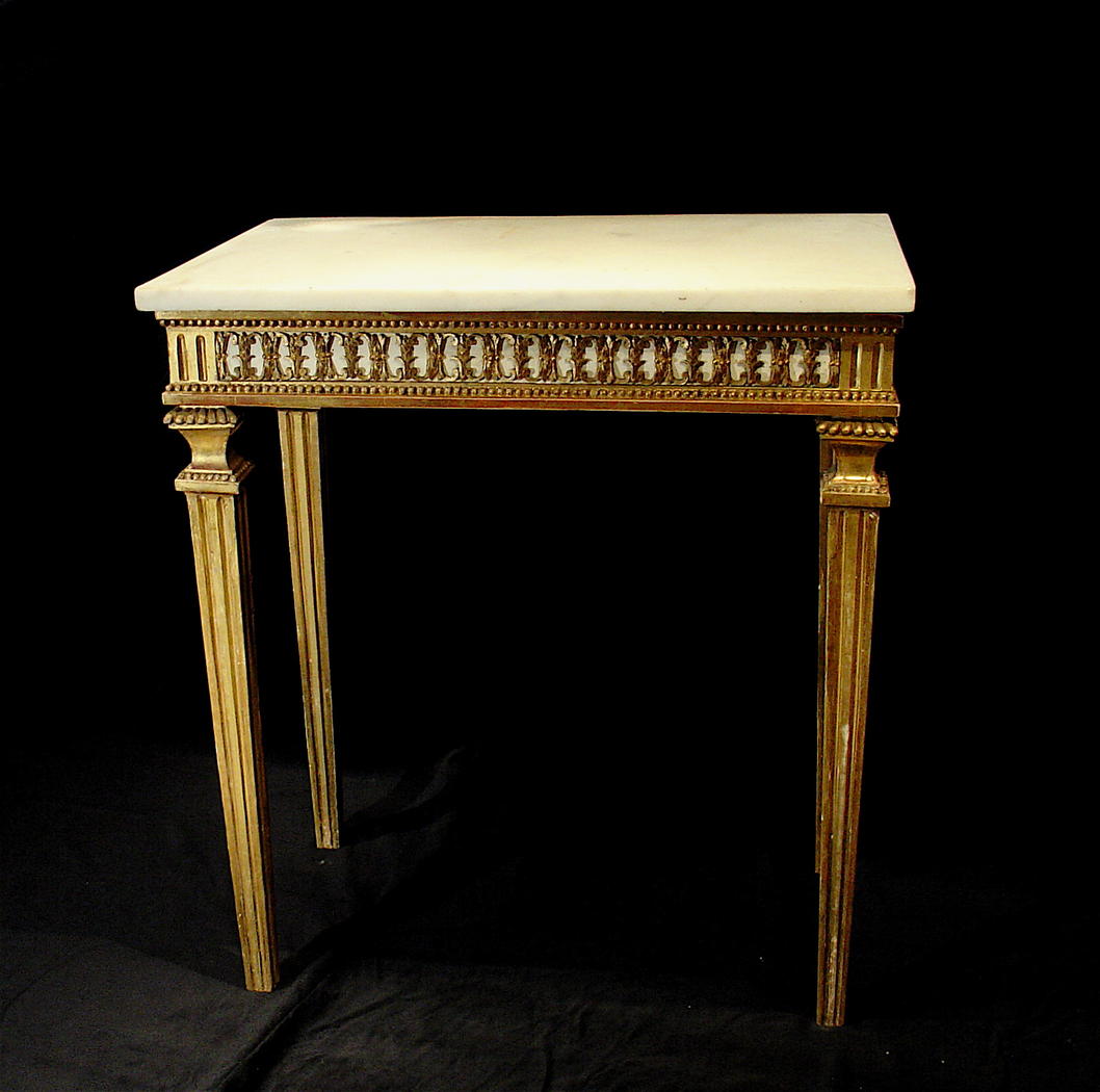 Gustavian console-table. Parcel-gilt and painted with white marble top. Stockholm made ca year 1800.