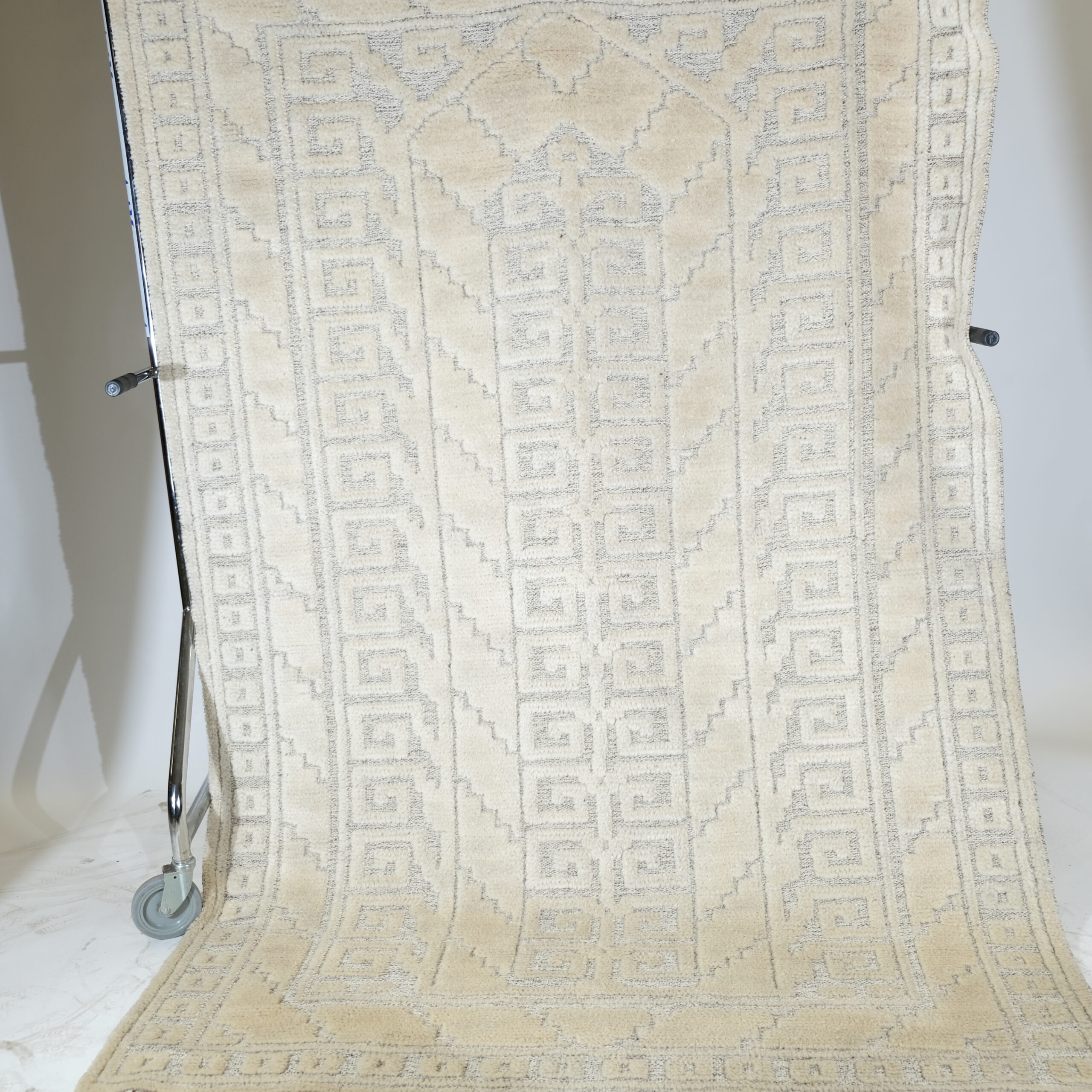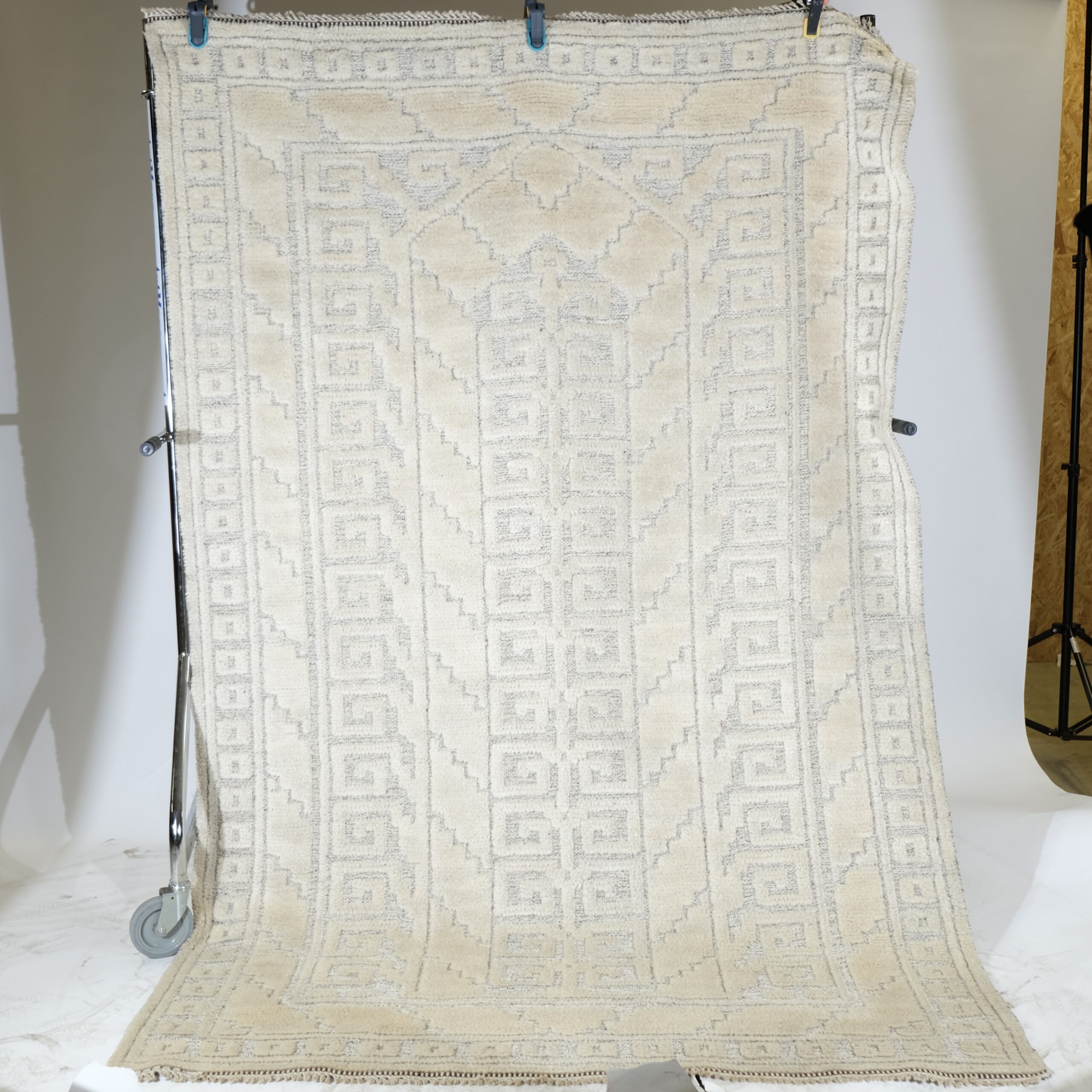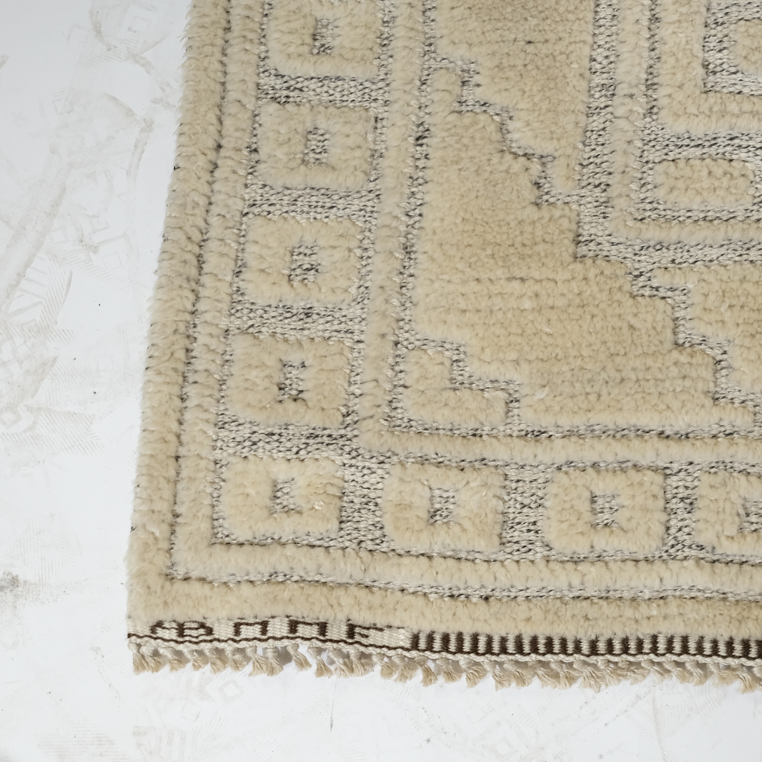 This exquisite carpet, "Vita Spetsporten," is an iconic design by renowned Swedish textile artist Märta Måås Fjetterström, originally created in 1934. With dimensions of 240x156 cm, this piece is crafted with meticulous attention to detail, showcasing Fjetterström's signature geometric and symmetric patterns that embody Scandinavian elegance and timelessness. The soft beige tones and subtle, intricate motifs make it versatile for various interior styles, adding warmth and sophistication. In very good condition this carpet is not only a functional piece but also a piece of art, ideal for collectors and enthusiasts of classic Scandinavian design. It can placed on a wall as well as on the floor, this is a piece of art. Signed AB MMF.